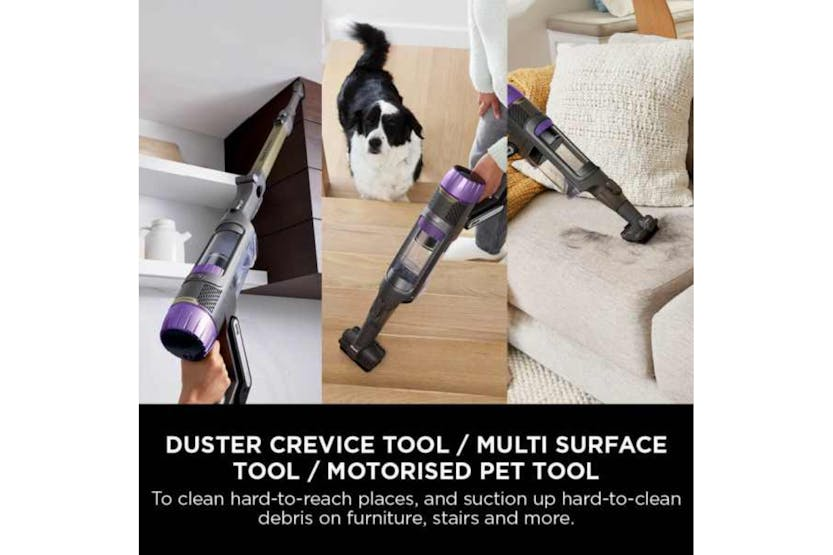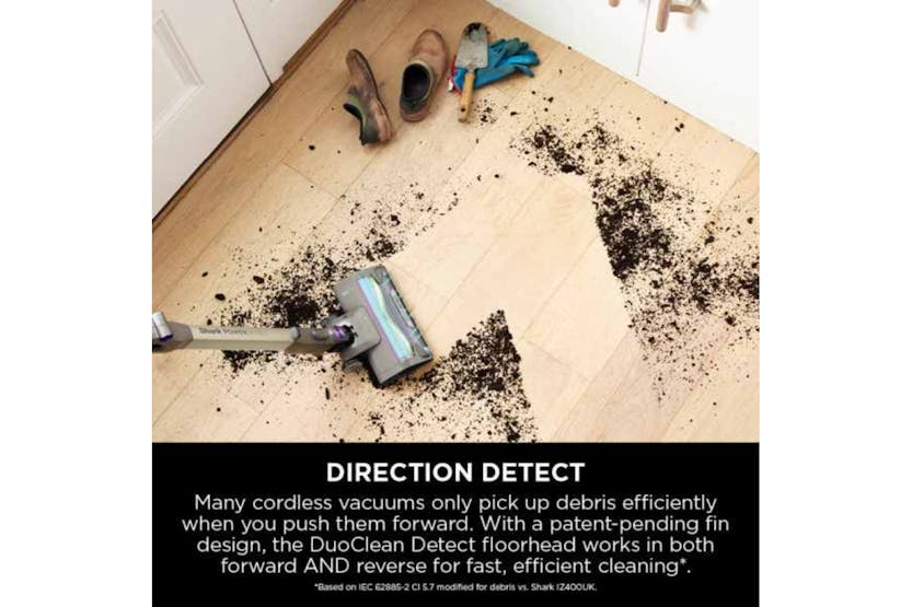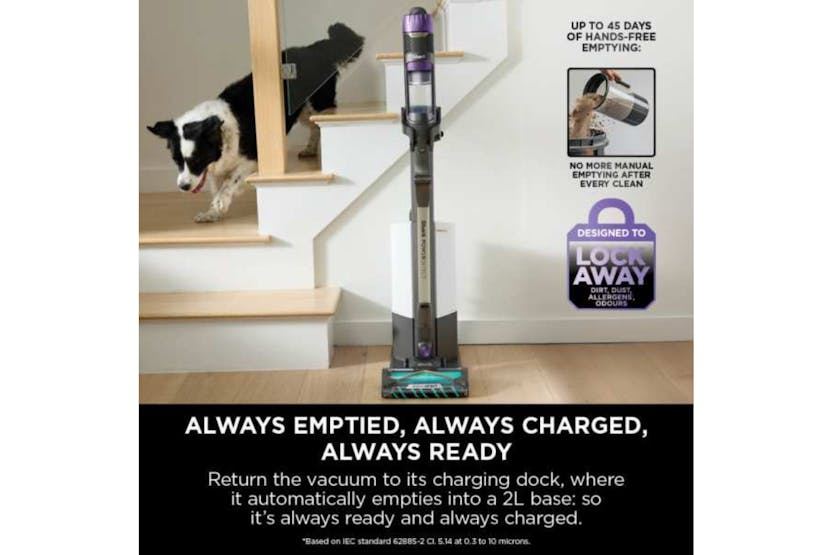 Description Check out the video: PowerDetect Intelligence Enjoy smart, fast, efficient cleaning with PowerDetect Intelligence, which boosts power by up to 75%* to increase cleaning. DuoClean Detect: Two brush-rolls and multiple sensors react and adapt for optimal performance. DirectionDetect: Designed to work in both forward AND reverse for faster**, more efficient cleaning. DirtDetect: Automatically detects dirt and boosts cleaning power. EdgeDetect: Senses edges & corners and increases suction. FloorDetect: Senses floor type and adjusts brush-roll speed and suction Empties & Charges After Every Clean Always ready, always charged. The Auto-Empty Base automatically empties and charges the vacuum while docked, so it’s always ready for the next clean. No more manual emptying after every clean— the Auto-Empty base holds dirt and debris for up to 45 days, so you can forget about emptying it for weeks at a time. The base locks away fine dust, debris, allergens and odours after every clean. Anti-Allergen Complete Seal Technology captures and traps 99.9%* of dust and allergens inside the base, while Anti-Odour Technology guards against bad odours. * Based on IEC standard 62885-2 Cl. 5.14 at 0.3 to 10 microns. Anti Hair Wrap Plus for powerful hair pickup Anti Hair Wrap Plus provides powerful hair pickup and anti-hair wrap performance—removing hair as you clean with specially engineered bristles. A chevron pattern directs debris and pulls hair to the centre of the floorhead to be removed by the anti-wrap combs, providing powerful hair pickup that removes hair as you clean. Perfect for long, short and pet hair. Powerful Handheld Vacuum with 3 Accessories The Shark PowerDetect Clean & Empty gives you fast, versatile cleaning, transforming into a handheld vacuum with 3 specialised tools: a Duster Crevice Tool for hard-to-reach edges and corners, a Motorised Pet Tool ideal for furniture, and a Multi-Surface Tool perfect for hard surfaces and hard floor stairs. Experience Shark's best* cleaning cordless vacuum with new reverse clean technology, and Shark's most powerful cordless suction DuoClean Detect: Two brush-rolls and multiple sensors react and adapt for optimal performance. DirectionDetect: Designed to work in both forward AND reverse for faster, more efficient cleaning. DirtDetect: Automatically detects dirt and boosts cleaning power. EdgeDetect: Senses edges & corners and increases suction. FloorDetect: Senses floor type and adjusts brush-roll speed and suction. The Shark PowerDetect Clean & Empty is a powerful, intelligent, deep-cleaning cordless vacuum that charges and empties after every clean – locking away dirt and debris for up to 45 days. Enjoy smart, fast, efficient cleaning with PowerDetect Intelligence, which boosts power by up to 75%*** to increase cleaning: Reverse Clean Technology: Many cordless vacuums only pick up debris efficiently when you push them forward. With a patent-pending fin design, the DuoClean Detect floorhead was designed to work in both forward AND reverse, so now you can enjoy a fast, efficient clean. Always ready, always charged: The Auto-Empty Base automatically empties and charges the vacuum while docked, so it’s always ready for the next clean. No more manual emptying after every clean— the Auto-Empty base holds dirt and debris for up to 45 days, so you can forget about emptying it for weeks at a time. Locks away dust & debris: The base seals away fine dust, debris, allergens and odours after every clean. Anti-Allergen Complete Seal Technology captures and traps 99.9%***** of dust and allergens inside the base, while Anti-Odour Technology guards against bad odours. Anti Hair Wrap Plus provides powerful hair pickup and anti-hair wrap performance-removing hair as you clean with specially engineered bristles. A chevron pattern directs debris and pulls hair to the centre of the floorhead to be removed by the anti-wrap combs, providing powerful hair pickup that removes hair as you clean. Perfect for long, short and pet hair. Technology at your fingertips: An LED display provides real-time readouts showing Dirt Detection and Battery Status. Mode Type enables you to select between ECO, DETECT, and BOOST mode, giving you complete cleaning control. Plus, with a runtime of up to 70 minutes†, this self-empty vacuum can manage even the most marathon cleaning sessions. Raise your cleaning game: Shark PowerDetect Technology isn’t just focused on your floors. By cleverly converting to a handheld vacuum, it’s perfect for cleaning stairs and furnishings. Complete with a Duster Crevice tool, Multi-Surface Tool, and Motorised Pet Tool, you can deep clean the whole house – top to bottom. It’s all within your reach: Flexology allows you to bend the wand to easily clean under furniture, or fold it over for compact, freestanding storage. Clean with confidence: Shark offers a free 5-year guarantee for your peace of mind (upon registration with Shark, 2 years for batteries, UK & ROI only). For T&Cs, see Shark Guarantee Terms & Conditions. p> *Based on average performance when empty, across IEC 62885-2, Clauses 5.1, 5.2, 5.4, and 5.3, 5.5 in forward and backward starting directions. p> Measured at the hand vacuum, tested in Boost mode ***Boost mode vs ECO mode Product Features: Product Weight:3.71kg (Vacuum Only)