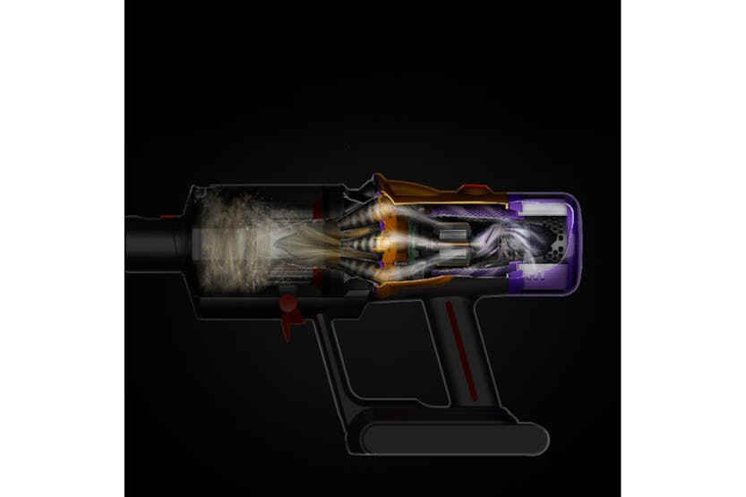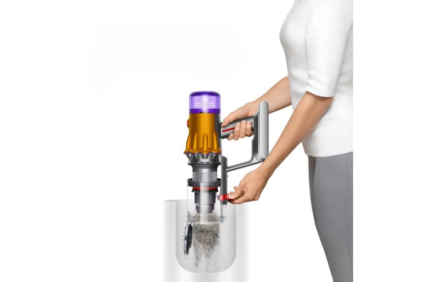 Description Check out the video: Laser Detects the Particles You Can’t Normally See A precisely-angled laser makes invisible dust visible on hard floors – making it more difficult to miss. Check out the video: Measures Microscopic Dust Particles A piezo sensor continuously sizes and counts dust particles – automatically increasing suction power when needed.4 Scientific Proof of a Deep Clean The LCD screen shows what’s been sucked up, displaying real-time scientific proof of a deep clean.3 Dyson Hyperdymium Motor Powerful, lightweight digital motor spins up to 125,000rpm to suck up microscopic dust and large debris. Root Cyclone Technology 11 root cyclones generate centrifugal forces of up to 100,000g to capture dust and debris from the airflow, so there’s no loss of suction. Energy-Dense Battery Each Click-in battery provides up to 60 minutes of fade-free power to clean here, there and everywhere around your home. Multi-Stage Filtration Captures up to 99.99% of particles as small as 0.3 microns.[2] Carbon Fibre Filaments Black anti-static carbon fibre filaments to extract fine dust from hard floors. The Power to Clean Anywhere The versatility of Dyson cordless technology makes cleaning your home easier. Powerful cleaning of floors, hard-to-reach places and mattresses. Laser Slim Fluffy Cleaner Head 25cm-wide cleaner head engineered with soft nylon and anti-static carbon fibre filaments to remove dust from hard floors and narrower gaps. With a low profile to reach further under furniture. Direct Drive Cleaner Head Deep Cleans All Floors Nylon bristles drive dirt from carpet. Black anti-static carbon fibre filaments extract dust from hard floors. Hair Screw Tool. Picks Up Long Hair and Pet Hair. Fast Anti-tangle conical brush bar spirals hair off and into the bin. Motor-driven cleaning for small spaces. Single-Button Power Control No need to hold the trigger. You can swap hands while navigating obstacles, making cleaning easier. Three Power Modes Auto mode intelligently adapts, with the optimum balance of power and run time. Eco mode provides longer run time for bigger cleans, while Boost mode is engineered for short, intensive cleaning. Wall Dock The Dyson V12 Detect Slim vacuum drops into the wall-mounted charging dock, ready for your next clean. No-Touch Bin Emptying Hygienic ejection mechanism drives dust and debris deep into your bin, in one action. LCD Screen Reports performance in real time, including second-by-second run time display – maintenance alerts, power modes and battery life. Easy to Maintain The filter and Fluffy™ brush bar can be washed, and the bin and tools wiped clean, to remove dust build-up and help optimise your Dyson vacuum’s performance.7 Click-in Battery Remove and replace at the press of a button to double your run time (second battery available to buy separately).