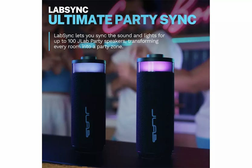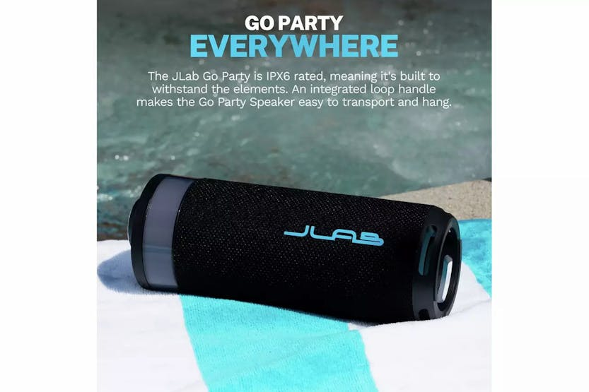 Description Check out the video: Go. Party Delivering impressive audio from dual 2" full-range drivers and dual 2" passive woofers, this 10-watt portable powerhouse produces rich, deep bass and crystal-clear highs (80 Hz - 18 kHz). Customize both audio and lighting effects through the intuitive JLab app, setting the perfect vibe for any gathering. Don't let a splash dampen the celebration, with IP56 waterproofing, this speaker keeps the party going. Take your festivities to the next level with LabSync mode and sync up to 100 speakers for the ultimate block party. Crank Up the Volume Enjoy room-filling, concert-quality audio from dual 2" full-frequency drivers and dual 2" passive woofers that deliver powerful volume with rich, deep bass and crisp, detailed highs. This portable Bluetooth powerhouse brings enough sonic punch to energize any space while maintaining audio clarity even at high volumes. With its impressive 16 hours of playtime (8+ hours with RGB lighting), you can keep your playlist going from sunset to sunrise. Party Lights This portable powerhouse lights up the party with vibrant RGB lighting. Customize the color, pattern and frequency to match the vibe via the JLab App. From solo fun to a fiesta, the Go Party speaker has you covered. LabSync Stereo Pairing LabSync offers an advanced feature to upgrade your audio experience. Designate any JLab Party speaker as left or right channels through the app to create a powerful 2-channel stereo system for a bigger sound stage and immersive listening experience. You'll enjoy dimensional audio that puts instruments and singers where they belong, transforming everything from house parties to movie nights with rich, balanced sound that fills your space. With the JLab App, customise the RGB lighting, controls, and sound to your personal preference - or use the EQ4 presets for JLab Signature, Balance or Bass Boost. Plus, get software updates for your product right when they're available. This product is supplied without a charging adaptor The required output of a suitable charging device is 5W minimum and 30W maximum This product does not support PD fast charging (harmonised fast charging) Product Features: Bluetooth compatible 10 watts 2 amplifier channels Frequency 20 Hz-100 Hz Bass reflex Speaker diameter: 50 mm