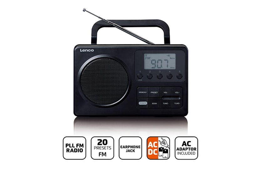 Description Online Only Take music wherever you go with the LENCO MPR-035BK-UK - Lenco PLL FM Radio. Portable, reliable and specifically crafted for maximum convenience, this will become your go-to device for a personalised sound experience. Incorporating innovative features along with a highly communicative user interface, our AM/FM radio ensures you stay entertained and informed. Wherever your travels take you, rest easy in the knowledge that LENCO's MPR-035BK-UK PLL FM radio is there, providing strong, stable reception thanks to its Advanced PLL (Phase-Lock Loop) technology and telescopic aerial. Forget about struggling to find signal or changing frequencies continuously; with this compact marvel, you can tune into your favourite stations with ease and enjoy crystal clear audio reception, irrespective of your location. Designed for absolute simplicity, this portable radio features a 2.5-inch LCD screen that gives a clear view of the FM frequency – never again struggle guessing your favourite channel! And with 5 direct preset buttons on the front, you can instantly switch to your favourite stations. Moreover, it allows for the storage of up to 20 FM preset stations, ensuring your taste in music or news is always at your fingertips, literally! For a more personalised sound experience, LENCO's MPR-035BK-UK provides a 3.5mm audio output for headphones. Enjoy your go-to playlists or explore new audio landscapes without disturbing others, allowing for supreme flexibility and privacy. This chic black portable radio is super light, weighing a meagre 0.42kg, simple to carry, yet impressive in delivering a powerhouse performance. Easily slip it into your bag or backpack and be ready to tune into superior sound, anytime. Opt for tailored sound delivered with optimal reception, wherever you are in Ireland! Choose the LENCO MPR-035BK-UK. A product designed for comfort, ease-of-use and exceptional performance! PLL FM radio 2.5-inch LCD screen 20 preset FM stations 5 direct preset buttons 3.5mm audio output for headphones Operates on both mains power and batteries Dimensions: 13.5cm (h) x 5.8cm (w) x 21cm (d) Weighs only 0.42 kg In the Box: LENCO MPR-035BK portable FM radio, AC adaptor, and user manual (EN/NL/DE/FR/ES/DK/SE/PL).