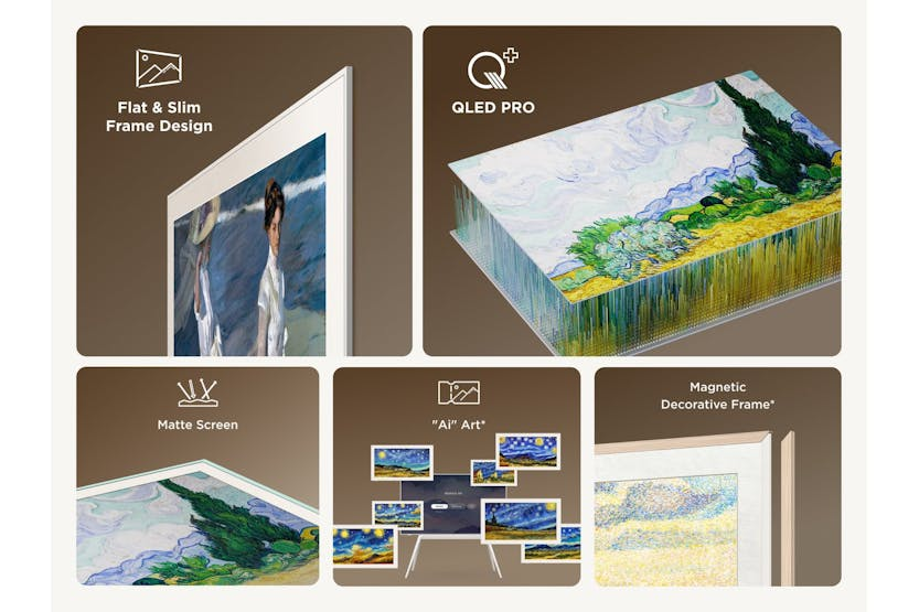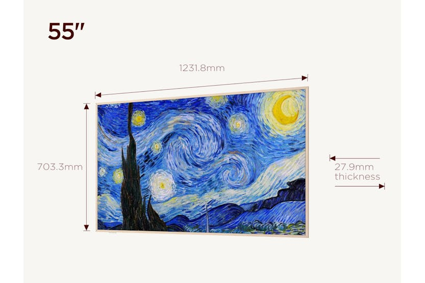 Description A300W NXTFRAME TV: Art in Form, Chic in Space Chic Style The TCL A300 Series TV advocates for a relaxed and aesthetically pleasing lifestyle. Inspired by Nature, its design brings a bright and artistic touch to home interiors, offering a relaxed and casual product experience. Flat & Slim Frame Design: Lead a Light Lifestyle 27.9mm Ultra-Slim Body*: Slim Like a Frame It resembles a masterpiece hanging on the wall, decorating your space by its slim body. *A body thickness of 27.9mm applies exclusively to 55-inch and 65-inch televisions. *The content is for reference only. The actual product (including but not limited to appearance, color, size) and screen display content may be slightly different. Please refer to the actual product. Seamless Wall Mounting*: Blend into Walls, Elevate your Decor The back of A300 Series seamlessly fits against the wall like a flat panel, as if it belongs there, minimalist but elegant. *In the event of wall surface irregularities, angles not being exact to the floor, or incorrect installation, a minor gap between the wall and the TV may be observed. Uni-Body Design: No More Need for One Connect Box The Uni-body incorporates ultra-thin components, it eliminates the need for the one connect box, bringing life back to the beauty of simplicity. Cable Management Design: Make Cables Invisible The hidden cable design on the back brings a sense of harmony to your neat space. *The Movable Floor Stand is sold separately. Magnetic Decorative Frame: Customize your Own Frames Dawn Birch Like the morning sunlight streaming through trees, warm and clear. *The A300 Series comes with a Dawn Birch frame, Twilight Elm frame and Vernal Mint frame need to be purchased separately. Vernal Mint* Like peppermint leaves swaying in clear water, fresh and soothing. Twilight Elm* Like a light mist enveloping trees in the twilight, serene and profound. Place as you Want: Seamless Wall-Mounted Slim and elegant, just like a frame on the wall. * The A300 Series comes with a Seamless Wall-Mounted, Movable Floor Stand and Adjustable Cabinet Stand are sold separately. *The content is for reference only. The actual product (including but not limited to appearance, color, size) and screen display content may be slightly different. Please refer to the actual product. Adjustable Cabinet Stand* You can place the TV on the sideboard and adjust its height as needed. Movable Floor Stand* Equipped with a movable floor stand, moves freely at home as you wish. Aesthetics Inspired by Nature Beauty: Pure Beauty Drawing inspiration from nature, TCL A300 Series integrates art into life. Fill your days with peace and joy. Luna White|New Moon|Doric Roman Pattern Luna White In the clear dusk, the crescent moon appears in a soft, warm white tone, narrating harmony and warmth in everything. New Moon On a clear evening, a crescent moon blends into the twilight, light and graceful, evoking imagination. Doric Roman Pattern Inspired by the Greek classical Doric Order, it is simple yet textured, both classical and modern, bringing cultural heritage and artistic atmosphere to A300 Series. *The content is for reference only. The actual product (including but not limited to appearance, color, size) and screen display content may be slightly different. Please refer to the actual product. Free Lifestyle: A Free-moving Lifestyle TV Movable Floor Stand*: Place Anywhere you Want, Switch your Style Intuitively Equipped with an easel-style floor stand and wheels, your TV glides freely at home, transforming every corner into your personal cinema for audiovisual enjoyment. Detachable Side Tray: Place your Favorite Decorations *Movable Floor Stand, Detachable Side Tray, Back Cover are sold separately. *The content is for reference only. The actual product (including but not limited to appearance, color, size) and screen display content may be slightly different. Please refer to the actual product. Detachable Casters: Stand or Move as you Wish Easy to Move With Just a Gentle Push: Yoga Everywhere Position your TV just right, with the morning light, follow the screen for yoga, and awaken your entire day. *This TV is lack of weather-resistant features,we advise against the prolonged outdoor deployment of the TV to maintain its optimal performance and durability. *The content is for reference only. The actual product (including but not limited to appearance, color, size) and screen display content may be slightly different. Please refer to the actual product. Enjoy Films Under the Stars* Move the TV to the balcony for a cozy night under the stars with your lovers. Create and Cast from Anywhere In your study, you can project your own work and documents onto the large screen. You can adjust the angle and position as you please. Read with your Kids Move the TV to the bedroom to narrate the stories for your child. Matte screen with anti-glare, softer light for a more comfortable viewing. Flow with Music On a leisurely weekend morning, move the TV to your bedside. With the gentle patter of rain on screen, relax and read, away from worldly noise. Enjoy your Feast by the Sea During meals, move the TV to the dining room. Enjoy the sound of waves on screen, feeling seaside romance at the table for an immersive dining experience. "AI" Art & Matte Screen: Effortless and Unlimited Inspiration "AI" Art*: Explore your Styles TCL A300 Series has more than 100,000 pre-generated AI artworks from classical style to impressionism. Just tap on the style and theme, and you get to personalize your screen to your style in seconds. *"Ai" Art images are pre-generated by AI technology, not created in real-time. *The content is for reference only. The actual product (including but not limited to appearance, color, size) and screen display content may be slightly different. Please refer to the actual product. Art Gallery: Bring the World's Art Galleries Home You can display the artworks even when the TV is off. The A300 Series would turn your home into