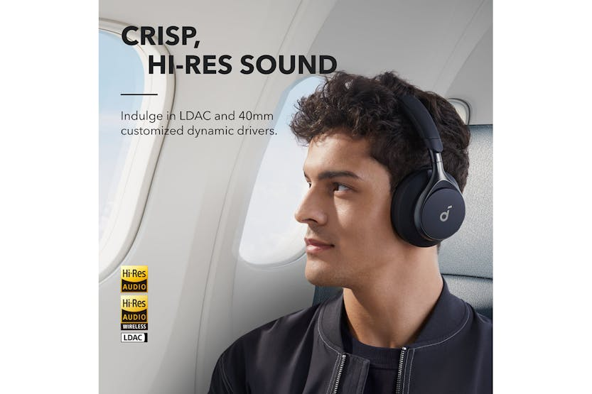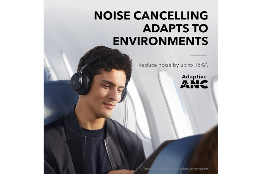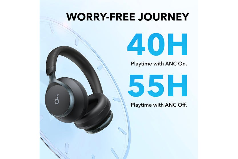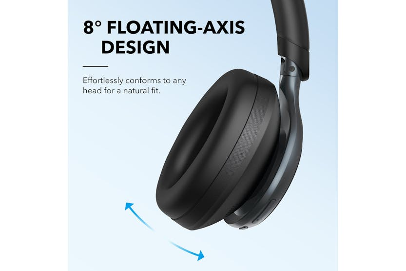 Description Check out the video: Auto-Noise Cancelling Hi-Res Wireless Audio Unique Sound Profile 40-Hours Playtime Long-Listening Made Comfortable The headband evenly distributes pressure on your head, for gentle support and comfort during prolonged wear. Contours to Any Head Shape With the floating design, the ear cups rotate 8° in either direction, effortlessly conforming with high compatibility, for a natural fit. Easy Pack-and-Go Designed for smooth movement and a symmetrical look. The ear cups rotate and fold neatly for convenient storage. Sleek, Smooth, and Elegant Space One combines style with ergonomic design, offering comfort and 3 stunning colors to showcase your flair. Product Features: Sound: Detailed sound, 40mm drivers Playtime (ANC off/on): 55H/40H Fast charging: 5 Mins = 4H Calls: 3 Mics with AI Travel pouch, AUX TCO certified: For better sustainability 2X* stronger voice reduction *Compared with soundcore life Q30 headphones Reduce noise by up to 98%* with adaptive noise cancelling *Tested by soundcore under laboratory conditions Crisp, Hi-Res sound via 40mm dynamic drivers Worry-free battery (40H ANC on, 55H ANC off) 8° Rotating ear cups and soft integrated headband for all-day comfort 5 Levels of adjustable transparency to tune your world