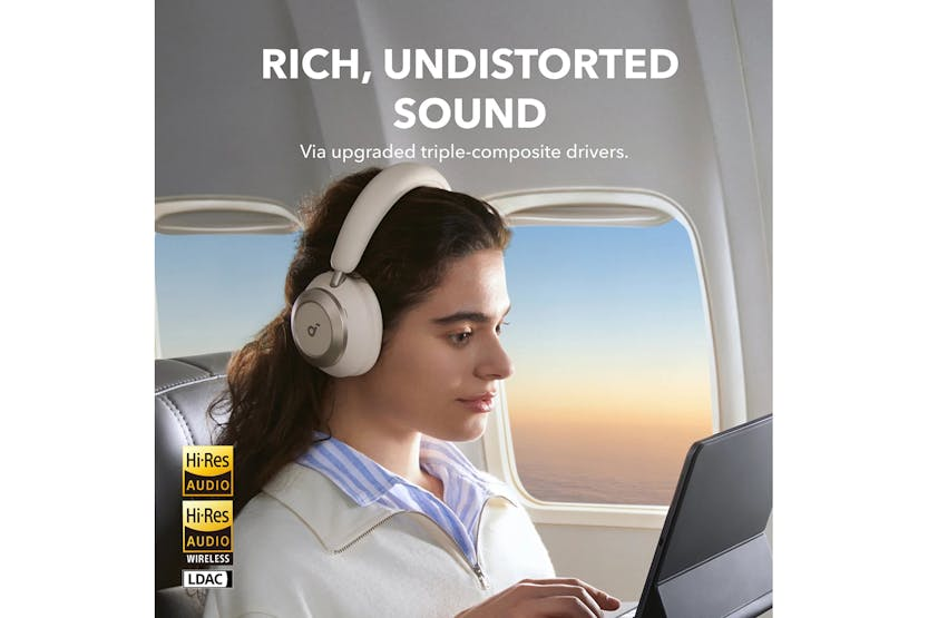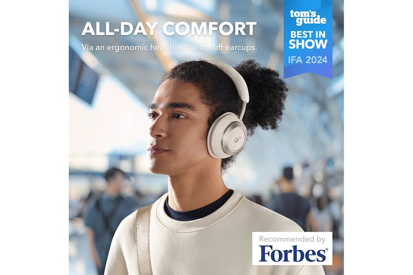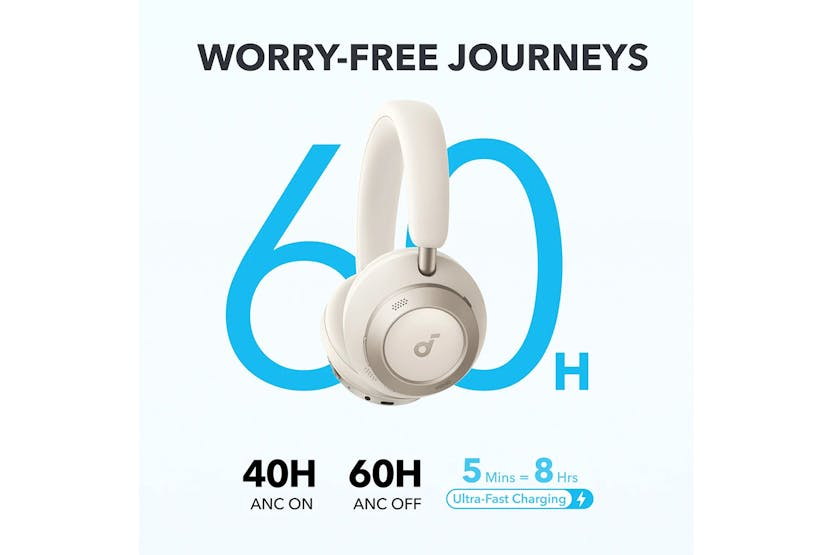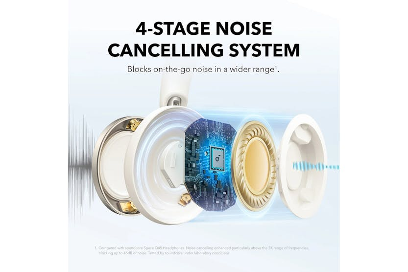 Description Super Foldable. Super Quiet Check out the video: Super Foldable Headphones Unfold to go with Space One Pro. Designed with the soundcore-engineered FlexiCurve Structure, Space One Pro saves space by reducing its size by 50%. Enjoy an immersive audio experience without any extra bulk. Super Foldable Design Five-Segmented Headband Space One Pro features a headband with five flexible segments for optimized and precise foldability—undergoing 10,000 durability tests for your reassurance. Optimal Folding Angle Each segment maintains a folding angle of 5-8 degrees, optimal for preventing excessive rotation of the headband. Three-Joint Separation Space One Pro features three joints connecting the headband and the earcups that rotate up to 180° to save space. Fold Guide Step 1: Rotate both panels until "L" and "R" are visible Step 2: Fold the left panel. Rotate the right panel until you see the soundcore logo Step 3: Fold the right panel to align with the left Soundcore-Engineered Flexicurve Structure Reduce Space One Pro's size by 50% and enjoy an effortless on-the-go listening experience, without the extra bulk. Durability tests are performed under Iaboratory conditions in the soundcore internal lab. 4-Stage Noise Cancelling System Wipes Out All Noise From airplanes to chatter, Space One Pro cancels out a wider range of noise, based on your dynamic movements. Two Extra Feedforward Mics A total of 6 mics work together to identify and block noise from all directions, adapting to various environments. Expanded Acoustic Chamber Enhanced chamber for buffering noise provides better passive noise reduction. Upgraded Algorithm - Adaptive ANC 3.0 Calculates in real-time and adjusts to your wearing conditions, tracking dynamic movements for maximum quiet. High-Sensitivity Drivers Space One Pro provides pure, immersive listening without affecting noise cancelling performance. Rich, Undistorted Sound: Upgraded Triple-Composite Drivers Advanced drivers with PEEK and Polyurethane diaphragms designed for perfect audio balance. Indulge in distortion-free sound with less than 3% Total Harmonic Distortion (THD)[5]. Ergonomic Design: Pressure-Relieving Headband The headband has an ergonomic curve for a pressure-free fit, evenly balancing force distribution-enhancing comfort. All-Day Comfort: Slow-Rebound Foam Earcups Designed for premium comfort, foam earcups adapt and conform as you wear them-providing consistent support. Clear Communication: 4 Mics and an Al Algorithm for Clear Calls The wind noise reduction Al algorithm and 4 mics ensure crystal-clear conversations on the go, even in noisy surroundings. Power For Days Find Your Perfect Sound Take the HearID test for a detailed audiogram and a sound profile uniquely tuned to your ears. HearID and Hearing test can be accessed via the soundcore app. Seamless Multipoint Connection Enjoy a stable connection with Bluetooth 5.3 and Multipoint Connection. Android users can enjoy the added benefit of quick, simple pairing thanks to Google Fast-Pair. App for Customization Personalize your listening via the soundcore app. Tune your EQ settings, set limits for hearing protection, and more. Activate Dolby Audio via the soundcore app. Dolby Audio cannot be used after turning on LDAC. The effect of Dolby Audio when listening to music may vary depending on the music style and mobile device version. Less Plastic for a Greener Future We now use FSC-certified, 100% paper-sourced materials in our headphones packaging. Notes: 1. Compared with soundcore Space Q45 Headphones. Noise cancelling enhanced particularly above the 3k range of frequences, blocking up to 45dB of noise. Tested by soundcore under laboratory conditions. 2. Battery playtime is obtained from testing in the soundcone laboratory in continuous audio playback at 50% volume. The actual playtime may vary by volume, audio source, environmental interference, usage, etc. 3. Fast charging is obtained from testing in the soundcore laboratory, using a 5V/1A charger and the charging cable included in the packaging. After being charged for 5 minutes following a low battery, the headphones can play nonstop music at 50% volume with ANC off continuously for 8 hours. 4. Amount of space saved is obtained from testing in the soundcore laboratory. 5. THD is obtained from testing in the soundcore laboratory. 6. LDAC is restricted by Bluetooth bandwidth and is not supported when using multipoint connection. Google and Android are trademarks of Google LLC. 7. Tum on LDAC mode in the soundcore app. LDAC is only compatible with Android devices. LDAC and LDAC logo are trademarks of Sony Corporation. Hi-Res Audio logo and Hi-Res Audio Wireless logo are registered tradernarks or otherwise trademarks of Japan Audio Society. What's in the Box: Carry Pouch 3.94 ft AUX Cable 0.98 ft USB-C Charging Cable Product Features: Soundcore-Engineered FlexiCurve structure: Reduces space one pro’s size by 50% with its super foldable design Exclusive 4-stage noise cancelling system: Cancels out on-the-go noise in real time Drivers with triple composite diaphragms: Enjoy Hi-res distortionless audio Long-lasting listening: Listen up to 40 hours with ANC and 60 hours without. Experience ultra-fast charging just 5 minutes of recharge offers 8 hours of music All-day comfort: Listen for longer with the pressure-relieving headband and soft earcups Earcup outer width and length: 85.5 x 93.7 mm Earcup inner width and length: 46.4 x 65.5 mm Earcup thickness: 20.3 mm Active noise cancellation: Adaptive ANC 3.0 Fast charging Multipoint connection Triple-composite drivers Calls: 4 mics with AI algorithm Read More