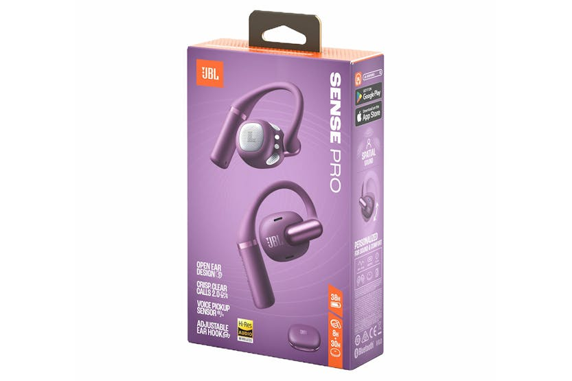 Description Check out the video: Check out the video: Check out the video: Jbl Opensound Technology & Spatial Sound JBL Sense Pro headphones rest comfortably on the curve of your ear, not in your ear canal, so you'll always hear the world around you. At the same time, the sound is directed straight into your ears, so no one can hear your music or calls, even if they're standing right beside you on the subway. Meanwhile, JBL Spatial Sound makes the audio feel like it's enveloping you with stereo content from any device. Hi-Res Audio Wireless with Adaptive Bass Boost Enjoy studio-quality Hi-Res Audio Wireless sound. LDAC transmits three times more data than Bluetooth audio, delivering high-performance 24-bit sound. And the adaptive bass boost algorithm adjusts the bass depending on how loud you're listening, so you'll always have precise, deep, rich, dynamic sound without distortion. 4-mic Crisp, Clear Calls 2.0 with AI-trained Algorithm With your JBL Sense Pro headphones, you can take calls anywhere. Featuring two beamforming mics per ear to accurately capture voice, the JBL Sense Pro also boast an AI-trained algorithm that reduces environmental noise. Plus, the Voice Pickup Sensor captures the bone vibration and works with the dual mics system to dramatically enhance voice clarity. The wind-resistant design of the JBL Sense Pro reduces air flow disturbance around the microphone pickup area to make your calls crystal clear even in the noisiest spaces. Adjustable Ear Hook for All-day Comfort That metal hinge doesn't just look luxe and cool. It's also adjustable, so you can ensure the best possible sound reproduction, no matter how your ears are shaped. The premium earhook is made of ultra-soft liquid silicone and features a slim memory internal wire, so it's both skin-friendly and incredibly comfortable. And the high-performance titanium alloy memory wire provides a stable and comfortable fit that won't fall out. Designed for All-day Wear Light, small, soft, and perfectly balanced, your JBL Sense Pro headphones are comfortable enough to wear all day. You'll have full situational awareness while you're wearing them, since they don't block your eardrums. Don't let little rain keep you from your walk. These IP54 water and dust resistant earbuds are built for the elements. Customizable Through The Jbl Headphones App Use the JBL Headphones App to tailor make your sound settings, activate Spatial Sound, personalize your sound with Personi-fi 3.0, customize the touch control features, personalize the call settings and much more. Up To 38 Hours Total Playtime, Plus Speed Charge and Wireless Charging Get up to 8 hours in the headphones and up to 30 more in the charging case before you need to plug them in again. And if that's not enough, 10 minutes charge gets you four more hours*. Or you can charge wirelessly! *Charging cable not included. Multi-point Connection Pair your JBL Sense Pro earbuds with up to two Bluetooth devices at the same time and then switch effortlessly from one to another. So if you're in the middle of a video on your tablet, you won't miss a call from your partner on your mobile phone. Dual Connect and Sync with Fast Pair Flip open the case and your earbuds pair with your Android device automatically. With Dual Connect, you can use both earbuds together or use either one individually. Sense The World Around You Sense the world around you with JBL Sense Pro headphones. Stay connected to your surroundings while immersing yourself in rich, vibrant Spatial Sound with JBL OpenSound technology with Air Conduction that is also Hi-Res Audio Wireless certified. The unique adjustable split ear hook features a soft and ergonomic design, enriched by metallic accents, that ensures a secure fit, personalized for your ears for all-day comfort. Four voice mics, JBL proprietary AI-trained algorithm for noise reduction and the Voice Pickup Sensor for voice clarity make sure your calls come through loud and clear even on a breezy day. And if a little drop comes along, JBL Sense Pro boasts an IP54 rating. With a battery that lasts up to 38 hours wirelessly rechargeable, the JBL Sense Pro got your back throughout the longest days. Use the JBL Headphones app to fine-tune a personalized listening profile and customize the intuitive touch controls so you can control your music and calls your way. Product Features: Driver size: 16.2 mm Number of microphones: 4 Bluetooth profiles: A2DP V1.3.2, AVRCP V1.6.3, HFP V1.9 Bluetooth frequency: 2.4 GHz – 2.4835 GHz Bluetooth transmitted modulation: π/4-DQPSK, 8DPSK Bluetooth transmitter power: < 10 dBm (EIRP) Bluetooth version: 6.0 Charging time: 2 hours from empty Maximum play time: 38 hours Speed Charging time: 4 hours Maximum talk time: 3.5 hours Built-in microphone Rechargable battery Touch control Speed charge