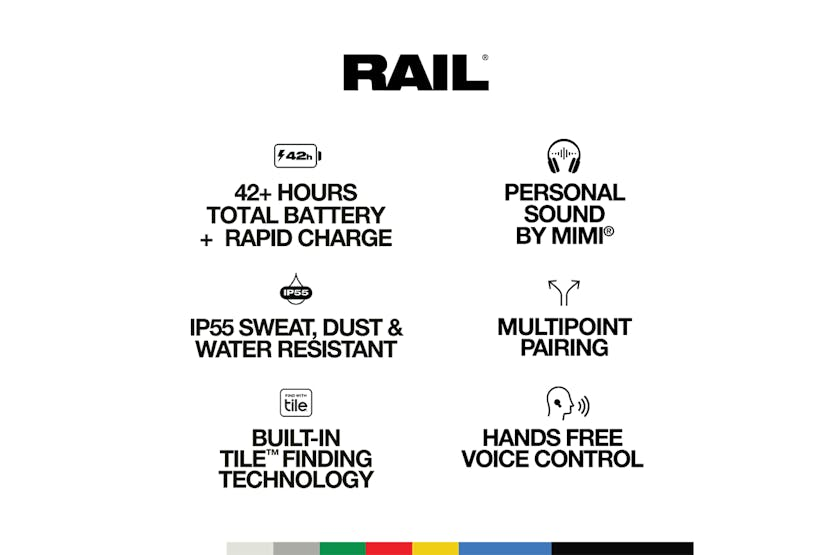 Description Check out the video: Mission Accomplished Introducing Rail, our new flagship family of earbuds with Skull-iQ Smart Feature Technology. We created Rail with a simple set of design requirements — it had to be the best sounding, best looking, most comfortable, most intelligent family of earbuds ever made, and it had to get better with time. Welcome to the future of future-proof audio. Use Your Words Rail is built with Skull-iQ, a powerful technology that runs innovative voice features and enables new upgrades via the Skull-iQ App. Hands-Free Voice Controls are available in multiple languages. By simply starting a prompt with âHey Skullcandy…,â you can control media players, summon your assistant (including Alexa and iHeart), access Spotify or even take a photo. The Sound of Science Rail delivers big, detailed sound with premium drivers and ergonomically designed ear gels for a super-comfortable, noise-isolating fit. Personal Sound by Mimi fine-tunes the sound to your individual hearing, and Clear Voice Smart Mic uses artificial intelligence to isolate your voice and reduce background noise Never Miss a Call, Never Lose a Bud Multipoint Pairing makes it possible to pair your earbuds to two devices at once, so if your phone rings while you're watching a movie on your laptop, your connection will automatically switch so you can take the call. Rail also comes with Tile finding technology built-in. If an earbud is misplaced, you can just âring' it from the free Tile app. Only Skullcandy audio is custom-tuned to deliver music you can feel. From the lyrics in your soul to the bass in your bones. Product Features: IP55 sweat, water and dust resistant Skull-iQ smart feature technology Personal sound by Mimi Multipoint pairing Built-In tile finding technology Hands-Free voice control Clear voice smart mic Adjustable stay-aware mode Sidetone Spotify tap Skull-iQ app compatibility Preset and custom EQ modes (music, bass boost and podcast) Call, track & media controls Custom button functions Use either bud solo Auto on/connect Bluetooth 5.2 Driver diameter: 6mm THD: <3% 42 hours total battery + Rapid charge Read More