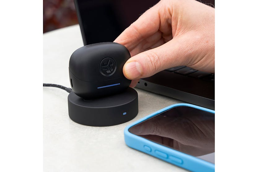 Description Sleek stem earbuds with 6-microphones for calls, hybrid ANC for noise cancellation, Lab spatial audio, and 56+ hours of playtime for marathon listening sessions. Marathon Playback 56+ hours playtime Hybrid ANC Hybrid active noise canceling + be aware for safe listening Lab Quality Sound Immersive lab quality sound via 11mm drivers Jlab App Customize your sound + experience with JLab app Lab Spatial Audio Built-in lab spatial audio Google Fast Pair Find your device with google fast pair + bluetooth multipoint Water Resistant IP55 sweat and splashproof Clear Calls Clear calls and strong ANC with 6 dedicated microphones Stay Powered Up Wireless charging + USB-C What's in the box Earbuds Charging case Gel ear tips Product Features: Controls: Touch Active noise canceling type: Hybrid Spatial audio Voice assistance IP Rating Google fast pair App support