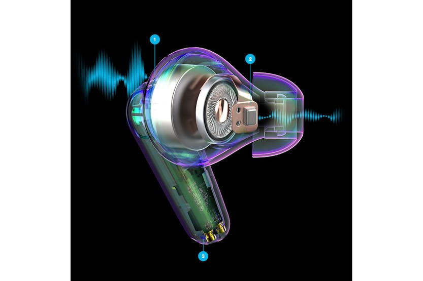Description Stylish stem design earbuds with hybrid noise cancellation and 26+ hours of playtime for everyday listening. Long Playtime 26+ hours bluetooth playtime Hybrid ANC Hybrid active noise canceling + be aware mode for safe listening Bluetooth Multipoint Google fast pair + bluetooth multipoint Lab Quality Sound Lab quality sound for EQ3 sound modes Splashproof IP66 Sweatproof & Splashproof Clear Calls Clear calls with noise canceling mics What's in the box Earbuds Charging case w/ integrated USB-C charging cable 3 Sets gel eartips Product Features: Active Noise Canceling Type: Hybrid Controls: Touch EQ3 Sound Google fast pair Voice assistance App support