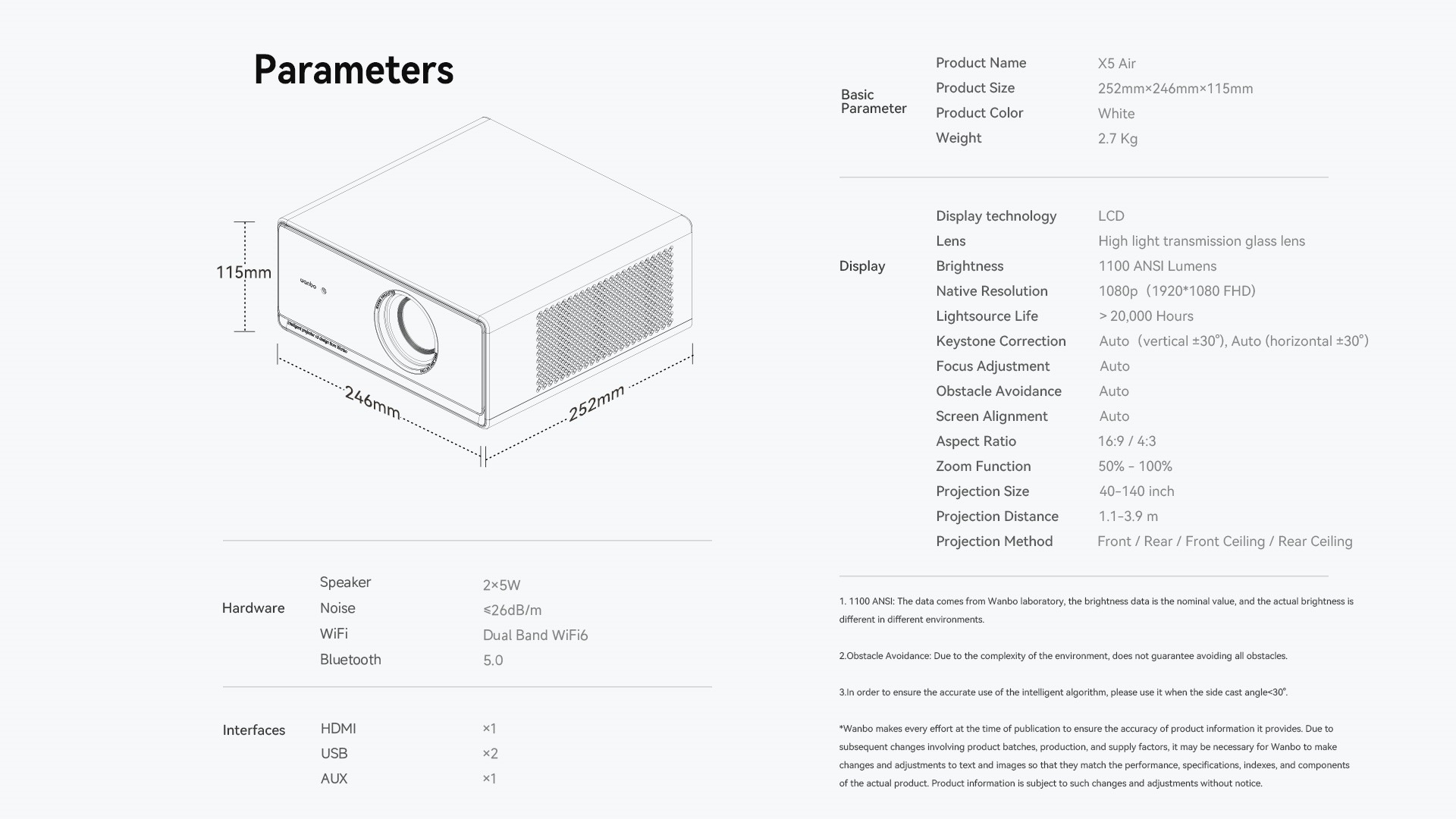 Enhance your home entertainment experience with the Xiaomi Wanbo X5 Air Projector. This sleek and compact projector offers stunning visuals with its 1080p resolution and 200 ANSI lumens brightness, ensuring a crisp and vibrant display for all your favorite movies, shows, and presentations. With its advanced LED technology, the Wanbo X5 Air provides a long-lasting and energy-efficient performance, perfect for extended use. Equipped with multiple connectivity options including HDMI, USB, and wireless screen mirroring, this projector offers seamless compatibility with a variety of devices. The built-in speakers deliver clear and immersive sound, while the portable design allows you to easily set up the projector anywhere in your home or office. Whether you're hosting a movie night or giving a professional presentation, the Xiaomi Wanbo X5 Air Projector is the perfect choice for all your projection needs.