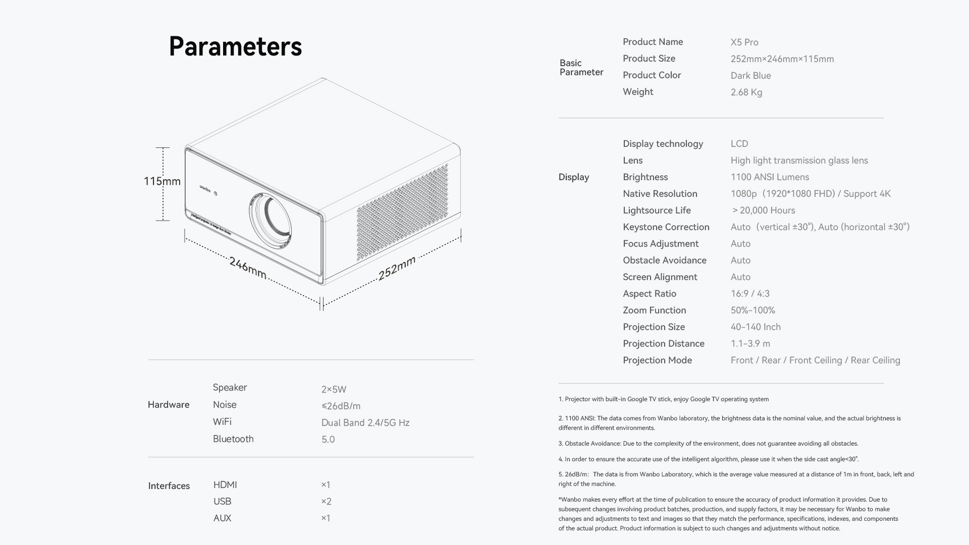 Enhance your viewing experience with the Xiaomi Wanbo X5 Pro Projector. This compact and portable projector delivers stunning image quality with its 1080p resolution and 200 ANSI lumens brightness. Whether you're watching movies, playing games, or giving presentations, the X5 Pro ensures crisp and clear visuals every time. Equipped with multiple connectivity options including HDMI, USB, and Bluetooth, this projector is versatile and easy to use. The built-in stereo speakers provide immersive audio, while the sleek and modern design adds a touch of style to any space. Upgrade your home entertainment setup or take your presentations to the next level with the Xiaomi Wanbo X5 Pro Projector.
