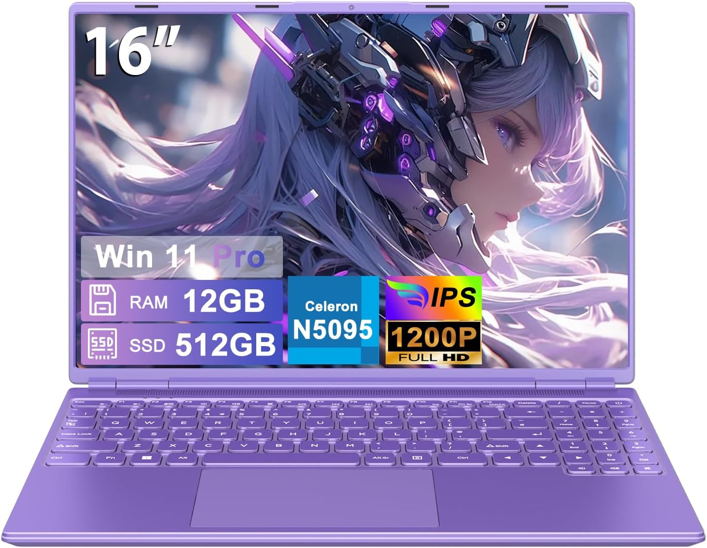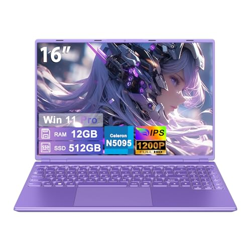 About this item 【Fast Performance & Efficient Cooling】Powered by Celeron N5095 processor, 4 cores and 4 threads, and the main frequency is up to 2.9GH, this laptop delivers smooth multitasking for study, office, and light gaming.The 5000mAh battery lasts up to 5 hours and intelligent cooling system enables the laptop to run more quietly and stably during heat dissipation. 【12GB RAM + 512GB SSD Storage】12GB of large-capacity LPDDR4 memory is enough to support you to run multiple programs at the same time, while using a browser to check information, the music software plays soothing music in the background, and then hangs an instant messaging software to receive messages. The switching between programs is smooth, without any lag or delay. The 512GB storage space is enough for most users to meet daily storage needs. It can store a large number of high-definition movies, music, photos and other multimedia files.Paired with WIN 11, it provides a seamless and user-friendly experience. 【16-Inch FHD Display with 16:10 Ratio】The 1920x1200 resolution and 16:10 aspect ratio provide 10% more vertical workspace than traditional 16:9 notebooks.This means that more document paragraphs and table rows can be displayed on one screen, eliminating the need for frequent page scrolling, greatly improving work efficiency. This resolution screen is usually paired with wide color gamut technology, with 100% sRGB color gamut coverage, which can accurately restore rich colors.180° flexible hinge can adjust the screen angle at will to meet the needs of a variety of scenarios. 【Versatile Ports & Wireless Connectivity】This notebook computer comes with a variety of ports: USB 3.0x2,Type-Cx1, HDMIx1, headset port x1, charger port x1, and a lock slot. Easily connect external drives, monitors, or headphone—this laptop meets all your needs. WiFi 5 and Bluetooth 4.2 ensure stable connections, while the built-in camera supports video calls, making it a practical office laptop for work and online learning. 【Lightweight & Portable Design】Weighing just 1.66kg with a 2.1cm thickness, its lightweight design feels almost weightless in your hand. Whether you're a student moving between lecture halls and dorms, or a professional commuting via subway or bus, it slips easily into backpacks, tote bags, or even fits comfortably in one hand. It also includes a wireless mouse and Keyboard protective film, adding extra convenience to your laptop setup! › See more product details