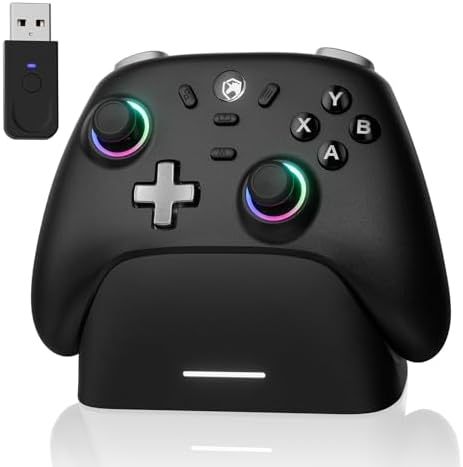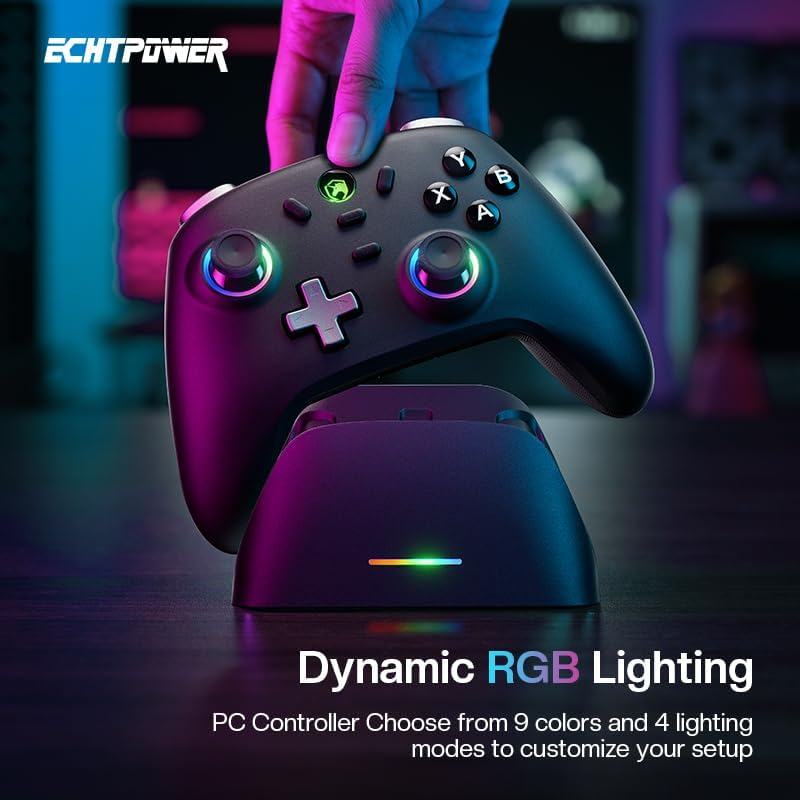 ECHTPower PC Gaming Controller–Wireless for PC with Hall-Effect Joysticks, 1000Hz Polling Rate, No Drift, Turbo & Vibration, Compatible with Windows/Switch/iOS/Android/Steam –Place & Charge Dock