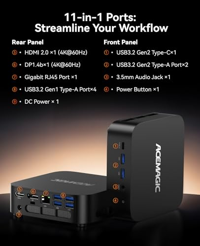 About this item [UNLEASH OFFICE POTENTIAL WITH RYZEN 7 7730U] - Powered by an AMD Ryzen 7 7730U processor, this Kron Mini K1 is small but mighty—ready to tackle any challenge! Thanks to AMD Simultaneous Multithreading the core-count is effectively doubled, to 16 threads. Ryzen 7 7730U has 16 MB of L3 cache and operates at 2000 MHz by default, but can boost up to 4.5 GHz, depending on the workload [7730U,WHICH IS MORE POWERFUL THAN THE 5825U] - The Ryzen 7 7730U is on par with the "i7"'s performance in most tasks, if not better. Compared with AMD ryzen 7 5825U, ACEMAGICIAN mini Computer 7730U delivers more than 11% higher performance than 5825U(Reference from Cinebench R23 Multi-Core). Compared with AMD ryzen 5 7430U/6600U/3550H, K1 desktop computer ryzen 7 7730U will be more powerful, providing faster speed and efficiency [16GB RAM MEMORY & 512GB SSD STORAGE] - ACEMAGICIAN K1 Micro pc is prebuilt with 16GB 3200MHz DDR4 RAM, which is 20% faster than 2666MHz RAM and supports dual-channels, expandable up to 64GB. Pre-installed with 512GB M.2 SSD, the data transmission speed is 10 times faster than ordinary SSD, which can greatly improve the startup of PC and the response speed of applications [FIGHT FOR SPEED, SAY BYE TO DELAYS] Stay connected and say goodbye to delays with our tiny PC. Featuring a 10/100/1000Mbps RJ45 port, WiFi 6 standard radio, and Bluetooth 5.2 technology, you'll enjoy peak interface bandwidth, efficiency, and reliability, with lower latency and less lag. Whether it’s for business, family entertainment, school, research, or social media, this mini desktop has your needs covered [4K TRIPLE DISPLAY OUTPUTS] - The K1 multimedia server small pc is equipped with AMD Radeon Graphics(8Cu, 2000MHz), ensuring faster image processing speed and 4K UHD video playback capabilities. With 1x HDMI 2.0,1x DP and 1x Type-C interfaces, it supports triple display, creating a larger work area, allowing you to enjoy 4K UHD visual effects and entertainment and dual work efficiency Model Number: K1 › See more product details