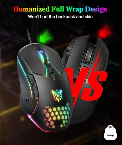 About this item 【E-sports level RGB light effect system】 360° surround streamer overflow light effect changes with the rhythm of the game in real time, Let the mouse become your game atmosphere commander, create a dedicated esports space. 【Intelligent DPI Battlefield mode】Equipped with PMW3389 e-sports level sensor, 4-speed DPI second cut (1200/2400/3600), accurate to 1μm trajectory tracking ability. FPS mode automatic sensitization anti-shake, MOBA mode intelligent acceleration, professional player level control at your fingertips. 【 7-key tactical layout 】20 million click life, 0.3ms career level trigger feedback. It gives you easy access to various commands, macros and shortcuts on your computer. The double sniping key in the thumb area adopts the nano non-slip texture, and the blind operation accuracy is increased by 60%. 【Marathon Ergonomics】 72-hour lab-polished dragon Ridge curve palm rest, nano porosity matrix + skin friendly frosted coating surface, maintain 0.4℃ temperature control for 8 hours. Provide a comfortable grip for each player. 【Full platform intelligent adaptation】Plug and play, support Windows/macOS/Linux system automatic recognition. If you have any questions, please feel free to contact us and ONIKUMA GAMING will answer your questions within 24 hours! Note : Click the DPI+/- button, the RGB lights will flash red to alert you. If you are tired of the light, long press for 3s to turn into low light mode. DPI value will return to 1200 when you restart the connected device. › See more product details