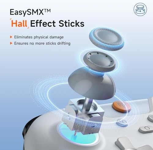 About this item 【2.4G+Bluetooth+Wired 3 Modes Connection】EasySMX ESM-X05 game controller wireless pc controller has 3 connection modes: Bluetooth, 2.4GHz and wired. 2.4G technology via dongle(PC and PS3)and bluetooth(Switch, Android, IOS and Tablet).Also 1 key switch to change the mode to Nitendo--Switch from PC. No key No wires, no hassle. Simply connect the controller to your device and play. Once you're out of battery but still want to play, plug in the USB cable to connect the controller and gaming devices 【7 Colors Cool RGB Lights 】With 7 adjustable colors RGB indicator light,the unique RGB lighting effects design of the EasySMX X05 PC Game Controller, allowing you to change the lighting to your preferences and creating an immersive gaming experience.In addition, the lights can be turned off for added flexibility. 【4 Hall Effect Sensors Joysticks & Hall Trigger】EasySMX PC controllers adopts 4 hall effect sensors, which has a longer lifespan, 0 dead-zones and a smooth and realistic feel. This Anti-Drift Controller improves the precision and comfort when controlling your games, provide precise and reliable input detection, allowing for smoother and more accurate movement in-game, whether it is accelerating and braking in racing games or unleashing skills in action games. Hall configuration, more precise. 【Ceramic Charging Cable, Plug & Play, Non-slip Grips】The wireless game controller has ceramic charging cable, ensures a more stable and reliable wireless connection, minimizing signal interference and providing a seamless gaming experience. It also offers low power consumption, extending the usage time. Faster and lighter,.The asymmetrical linear motor of the controller for pc puts you in the center of the action, giving you an immersive gaming experience with multi-magnitude vibration feedback. 【 Long-standby Battery Life Powered Operated】The 2.4g Wireless Gaming Controller embedded 750mA lithium battery and a smart sleep. The Wireless Game controller gamepad has a built-in standard Built-in 750 mA lithium battery, battery life is over 25 hours. 【Free Modes Switching】The X05 game controller offers a One key mode-switch-button, allowing you to seamlessly switch between 3 different modes 2.4G+Bluetooth+Wired, also 1 key switch to change the mode to Nitendo--Switch from PC. 3 Modes Connection or settings to suit your gaming preferences as you like.The wireless bluetooth controller works with Windows PC, Switch,Android Phone, IOS,Steam Deck. 【Turbo Function & Double Vibration】This gampad pc has turbo function, and you can customize the Turbo button as you like to free players' fingers and destroy their enemies with just one press, making it easy to win an arcade or action game. Built-in new and double vibration motors, so gampad pc's two electric motors make the game more realistic, which on the controllers vibrates when you slide or shoot to make the game exciting. 🎁🎁🎁Including a pair of protective joystick caps🎁🎁🎁 💔 Not compatible with Xbox, Luna and Nvidia GeForce Now💔 💔💔Any problems pls contact us in advance to get satisfactory solution before returning it.。💔💔 › See more product details
