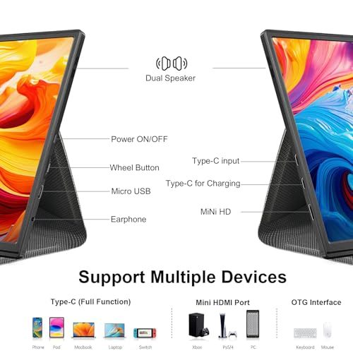About this item 【Stunning Visuals】10.5" FHD Portable Monitor with advanced IPS display and HDR support delivers breathtaking 1920x1280 resolution, vibrant colors, and wide 178° viewing angle. Perfect for gaming and work, it ensures smooth performance with eye-care technology that reduces blue light and flickering. 【True Gaming Monitor】Elevate your gameplay with this portable game monitor. Featuring ultra-low latency and excellent color rendering, it offers seamless visuals for PS5, Xbox, Nintendo Switch, and more. Dual built-in stereo speakers provide an immersive audio experience. 【Universal Compatibility】Connect effortlessly via USB-C to laptops, PCs, Macs, tablets, and phones. This plug-and-play portable screen requires no drivers—simply plug in and enjoy instantly in extended or mirrored mode, ideal for work or entertainment. 【Slim & Portable Design】Ultra-thin, lightweight, and travel-ready, this portable monitor slips easily into your bag. The included PU smart cover protects against scratches and doubles as an adjustable stand for landscape or portrait viewing. 【Complete Setup Included】Get started right away with the Moonka 10.5” portable display, 3 cables (USB-C, HDMI), a charging adapter, and a user manual. Everything you need for a multi-functional mobile monitor is in the box! › See more product details