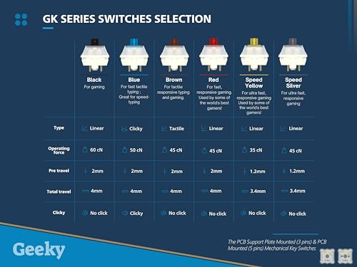 About this item ⏩ HOT SWAP MECHANICAL SWITCHES: Change, lube or upgrade your switches in an instant using the included tools without soldering. ⏩ RGB: The multicolor RGB lighting system features 16.8 million colors that can be customised into twenty sets of mesmerizing backlight patterns using the software. ⏩Linear: for fast, responsive gaming ; used by some of the world's best gamers ⏩ DETACHABLE TYPE-C CABLE: Comes with a 5FT/1.5M Type-C to Type-A USB cable that's removable for convenience and portability, ensuring a reliable connection with your devices. ⏩ LUBRICATED STABILIZERS: Pre-lubed stabilizers ensuring minimal wire rattle and solid gaming experience ⏩ SOFTWARE: set up complex macros or rebind keys as you wish and customize lighting effects ⏩ DOUBLESHOT KEYCAPS: Long-lasting, resistant, ultra-sharp legend keycaps in OEM Profile, perfect for typing and gaming, the best of both worlds. ⏩ HIGH-SPEED 1kHz POLLING RATE: Delivering a swift 1ms response time, the GK 61 guarantees precision and quick input registration in fast-paced gaming scenarios. ⏩ Compatibility with Mac and Windows; Compatible with Windows 10, Win 8, Win 7, Win Vista, Windows XP and Mac OS (Might need to remap some key through the software) ; The keyboard is adapted for all environment, Home & Office use. ⏩ KEYPULLER: Keycap puller / Removal tool included to change your key caps on the go or at a esport tournament. Show More › See more product details