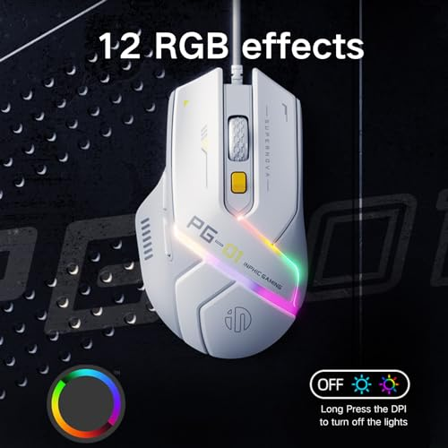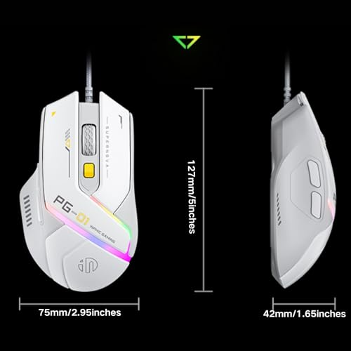 About this item High Precision and Quick Response: This gaming mouse is equipped with a gaming chip, supporting 6 levels and up to 12800 DPI (1000-1600-3200-6400-9600-12800). The 1000Hz polling rate ensures that every action is reflected instantly in your game, giving you an edge in intense gaming competitions Twelve Cool RGB Lighting Effects: The mouse features twelve adjustable RGB lighting effects, offering personalized visual enjoyment. Enhance the ambiance of your gaming setup with more colors and atmosphere, elevating your overall gaming experience Ergonomic and Lightweight Design: With a 75g lightweight and ergonomic structure design, this mouse ensures hand comfort even during extended use, reducing fatigue. It is perfect for long gaming sessions and work Wide Compatibility and Programmable Functions: This gaming mouse is compatible with a variety of devices, suitable for home use, office work, design, and gaming. The programmable buttons support custom settings, enhancing the convenience and efficiency of your operations Durability and Worry-Free After-Sales: Equipped with a 1.8-meter durable cable, this mouse ensures stability and longevity. Enjoy twelve months of free replacement and a thirty-day money-back guarantee, giving you peace of mind with your purchase and use › See more product details