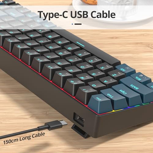 About this item ✅ 【65% Mechanical Gaming Keyboard】: SURMEN pc gaming keyboard 60 percent is designed with single led lighting effect, creating a cool and colorful game atmosphere to enhance the excitement of the game. The backlight can be easily turned off. ✅ 【Full anti-ghosting keyboard】: all 68 keys are no conflict, allow multiple keys to work simultaneously with high speed for a reliable connection, great for gamer, typist, programmer, writer etc. ✅ 【Linear Red Switches】: SURMEN gaming keyboard with red switches, which are linear, top-to-bottom switches. These switches require less force to press down and the keys feel smoother and easier to use. No tactile "bump" but responsive. A great choice for work and play! ✅ 【Backlit PBT Keycaps】: 50 million times keystroke test, small actuation force and short travel make it. Solid base with double injection PBT keycaps design, and shine-through the letters, it is built to withstand a lifetime of gaming. ✅ 【Wide Compatibility】: The USB wired gaming keyboard works well with computer, PC, laptop, compatible with Windows 2000/Vista/Win7/Win8/Win12/MAC/Linux for gaming pc. › See more product details