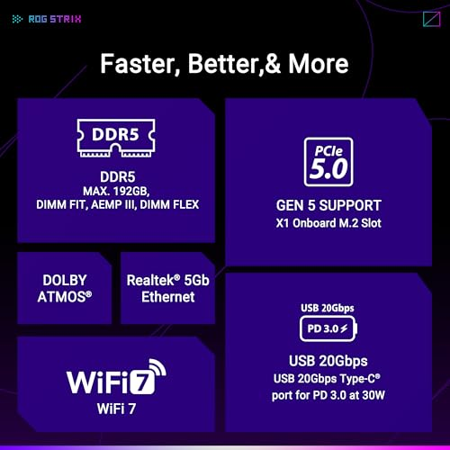 About this item Designed for the future of AI computing, with the power and connectivity needed for demanding AI applications Support RAM up to 256GB DDR5 using single 64GB modules Intel LGA 1851 Socket: Designed for Intel Core Ultra processors (Series 2) Optimized thermal design: Solid heatsinks with integrated I/O coverage, equipped with high conductivity thermal pads High performance network: Wi-Fi 7 (802.11be) and Realtek 5Gb Ethernet network › See more product details