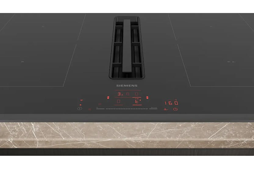 Description More Heating Area for Large Cookware When using large pots and pans, combiZone lets you connect two circular induction zones to create a bigger cooking area. The Induction air Plus Guarantees Minimal Noise Without Compromising on Suction Power inductionAir Plus supports you in being the perfect host as it always guarantees fresh air without odours or grease at minimum noise. The Intelligent Hob That Makes Life More Convenient With Wi-Fi-enabled Siemens home appliances and Home Connect, your kitchen is more connected and intelligent. The synergy of Wi-Fi-enabled appliances, intelligent software and an intuitive app offers a wide range of options to easily integrate in your home. While some ease the workload and others open up new possibilities, they all make life as comfortable and convenient like never before. Discover a Whole New World of Delicious Recipes Are you sometimes overwhelmed by deciding what to cook? Well, that is no longer a problem thanks to the Home Connect App which amongst other things, offers you a wide range of delicious recipes to suit your lifestyle. Make your choice and transfer the ideal settings to your hob with the touch of a button. Enjoy flexible food preparations, and above all, delicious meals. To use this feature, simply connect your hob to your registered Home Connect account. Make Your Cooktop a Personal Affair Would you like to personalize your cooktop according to your own preferences? With the Favourite button it's easy: For example, you can integrate your cooktop into your smart home and use the Favourite button to turn on a light in the living room or programme the settings for reoccurring dishes like your perfect breakfast eggs to ease your routines. Temperature Control at Your Fingertips Operating your hob just got more intuitive. With the touchSlider, simply touch or slide your finger to control the power level of your cooking zones. The heat regulation takes place in half levels, up to a maximum setting of nine. Ultra-easy Cleaning With inductionAir, there’s a triple overflow protection system that helps prevents liquids or other spills from entering the hob. If anything does spill into the unit, you can simply pop the dishwasher-safe grease filters into your dishwasher for easy cleaning. Say Goodbye to Burned Meals Now there is no need to have to think about adjusting heat settings while you cook. The fryingSensor Pro keeps the heat in the pan at a consistent level, with the choice of 11 temperature options. The intelligent sensor controls the temperature and avoids burning, so you get excellent results every time. Enjoy spending time with your guests, without worrying about burned food. "Alexa, Ask My Hob How to Make..." Do you find it challenging to choose the right cooking temperature for your dishes? Ask Alexa – she knows the correct answer, and with fryingSensor Pro, be assured that you will always get a perfect meal without burning anything. More Power When You Need It Use powerBoost to increase the power of an induction zone by up to 50%. That could save you up to 35% of the time it usually takes to heat up pots. Spend less time waiting and more time stirring, seasoning and serving your brilliant meals. What's in the Box: 1 x Slider for unducted recirculation 1 x Clean Air Plus odor filter Product Features: Basic surface material: Ceramic Length electrical supply cord: 110.0 cm Number of speed settings: 9-stage + 2 intensive Maximum output air extraction: 500 m³/h Boost position output recirculating: 595.0 m³/h Maximum output recirculating air: 487 m³/h Boost position air extraction: 622 m³/h 3 sided bevelled frameless finish Main on/off switch: switch off all cooking zones at the touch of a button Power Consumption in standby mode: 0.25 W Read More