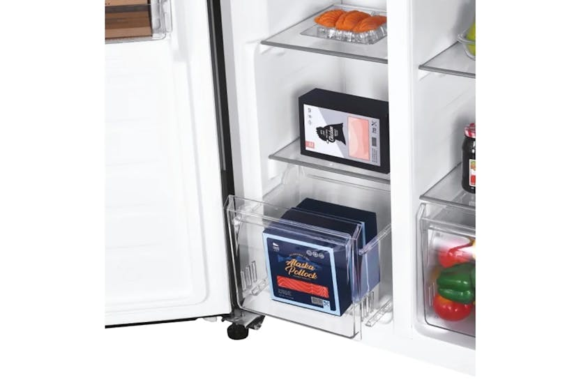 Description Side By Side The Candy American style side by side fridge freezers are designed with style and technology at the forefront and will suit any kitchen setting be it modern or traditional. They come complete with a digital display for ease of use. Style And Durability We have designed our products to the highest specification, with easy to remove adjustable glass shelves, extra large salad crisper and versatile door balconies. Some models also come with a chrome removable wine rack for added flexibility. Glass Shelves All glass shelves in the refrigerator are spill resistant and easy to clean. Freezer Compartment The freezer comes with sturdy transparent freezer drawers, giving full visibility and perfect cooling conditions.