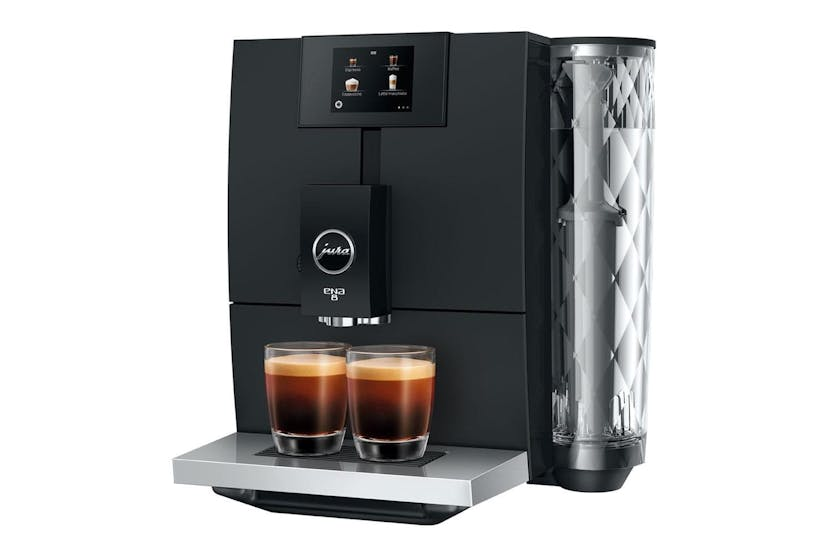 Description ONLINE ONLY ENA 8 Full Metropolitan Black | Coffee Machine | Bean To Cup | Compact Discover the ultimate in home coffee convenience with the JURA ENA 8 Full Metropolitan Black, a compact bean to cup coffee machine that brings barista-quality coffee to your kitchen. Designed for Irish coffee lovers who value both style and substance, this small appliance packs premium technology and elegant design into a space-saving format, making it ideal for modern homes, apartments, or offices where space is at a premium but expectations are high. The ENA 8 is engineered to deliver a superior coffee experience every time. Featuring JURA's Professional Aroma Grinder, it ensures a consistently even grind, unlocking up to 12.2% more aroma from your favourite coffee beans. Whether you crave a rich espresso, a smooth cappuccino, or a velvety latte, the innovative fine foam technology creates beautifully light milk foam for all your favourite milk-based specialities. With the new two cup function, you can now prepare two black coffee drinks at once—perfect for sharing a morning brew or entertaining guests. Operating the ENA 8 is effortless thanks to its intuitive touchscreen display, giving you access to 15 different coffee specialities at your fingertips. The integrated WiFi technology allows you to control your coffee machine directly from your smartphone using the J.O.E.® app, adding a layer of convenience for busy mornings or when you want to impress friends with your coffee-making prowess. Hygiene is never compromised, with a TÜV-certified milk system cleaning function that can be activated at the touch of a button. This ensures your machine remains spotless and your coffee always tastes fresh, cup after cup. The ENA 8's minimalist design, highlighted by a chrome-plated cup tray and a crystal-clear diamond-look water tank, adds a touch of sophistication to any Irish kitchen, blending seamlessly with contemporary interiors. Despite its compact size—measuring just 27.1 x 32.3 x 44.5 cm—the ENA 8 does not compromise on performance or quality. It is the perfect choice for those who appreciate both good taste and good coffee, offering a premium coffee experience in a small, stylish package. What's in the Box: Crystal-clear diamond-look water tank Integrated milk system Product Features: Professional aroma grinder for enhanced coffee aroma Fine foam technology for perfect milk-based drinks Two cup function for preparing two black coffees simultaneously 15 coffee specialities available via touchscreen display WiFi connectivity and J.O.E. app compatibility TÜV-certified milk system cleaning for optimal hygiene Elegant, compact design with chrome and diamond-look accents Dimensions: 27.1 x 32.3 x 44.5 cm Colour: Metropolitan black Bean to cup operation Touchscreen display Crystal-clear water tank
