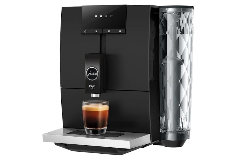 Description ONLINE ONLY Discover the art of exceptional coffee at home with the JURA ENA 4 Metropolitan Black. This compact bean to cup coffee machine is designed for coffee lovers who appreciate both style and substance. With its sleek Metropolitan Black finish, the ENA 4 brings a touch of modern elegance to any Irish kitchen, while delivering barista-quality coffee at the touch of a button. Experience the difference of freshly ground coffee, not capsuled, thanks to JURA's innovative Professional Aroma Grinder. This advanced grinder unlocks the full intensity and aroma of your favourite beans, ensuring every cup is rich, flavourful, and perfectly balanced. The ENA 4's intelligent Pulse Extraction Process (P.E.P.) optimises extraction time for short specialities, enhancing the depth and complexity of every espresso or lungo you brew. Designed for simplicity, the ENA 4 makes it easy to enjoy your perfect cup. With intuitive one-touch operation, you can select from three aroma levels and even use ground coffee if you prefer. The smart preselection functions allow you to customise your coffee experience, while the compact footprint ensures it fits seamlessly into any space, from cosy apartments to busy family homes. Whether you are starting your morning with a strong espresso or unwinding with a smooth coffee in the evening, the JURA ENA 4 Metropolitan Black delivers consistent results every time. Its modern design and user-friendly features make it an ideal choice for Irish households seeking convenience without compromising on quality. What's in the Box: Starter cleaning kit Product Features: Freshly ground coffee with Professional Aroma Grinder for maximum flavour Intelligent pulse extraction process for optimal extraction and aroma Simple one-touch operation with three aroma levels Option to use ground coffee for added flexibility Compact, stylish design in Metropolitan Black Easy to clean and maintain Product type: Bean to cup coffee machine Colour: Metropolitan black Preselection for three aroma levels Compatible with whole beans and ground coffee Modern, space-saving design