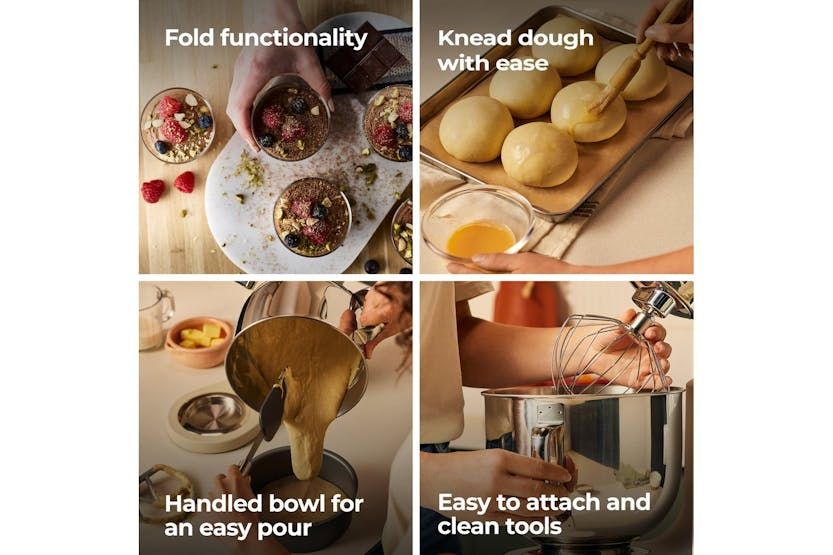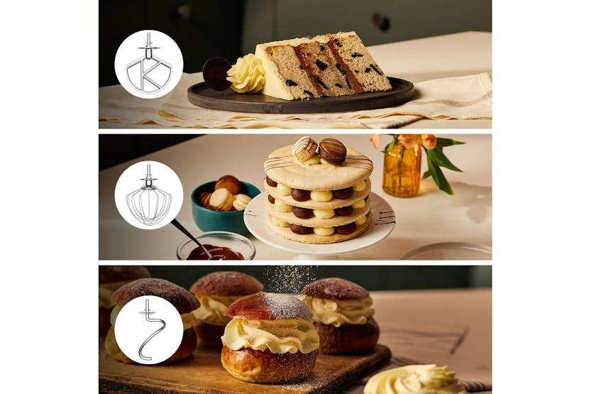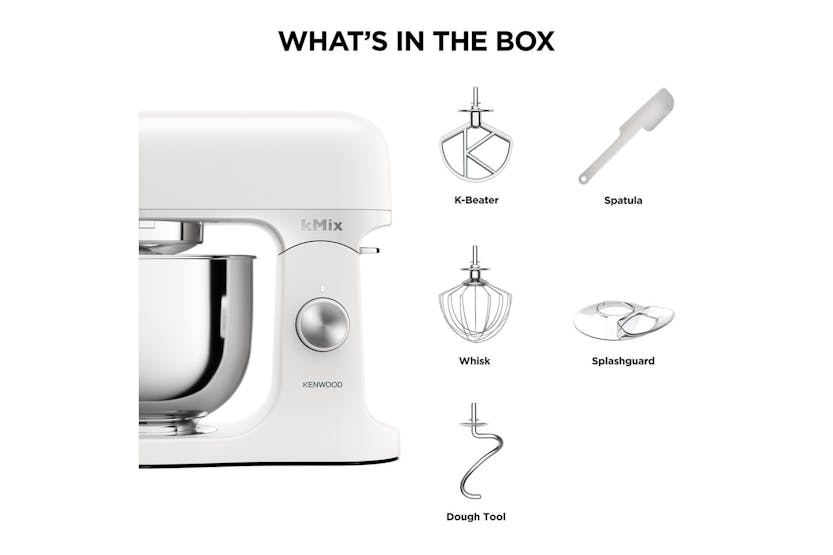Description Whoever You Are, Be You Express your individual flair, your love of design and your passion for baking with kMix. Choose from Bold Red, Calm Cream, Sleek Black or Pure White, complimented by glossy finishes, matt tones and stainless steel for the ultimate kitchen style statement. Power that Gets Result More than just a pretty picture, kMix delivers great results too. Powered by a 1000w motor, you can enjoy effortless performance, from egg whites to bread doughs. Whatever the task, kMix gets the job done. Flawless Folding Results For delicate mixes, enjoy the kMix fold function. Gentle enough so no air is lost but thorough enough to catch all the mix, for bakes are as light as air. Set the Pace With the electronic speed control dial you can build speed when you need to- for less mess when you start and ultimate control of your mix. The Right Tools for the Job Getting started is as easy as one, two, three with the whisk, a dough tool, and the legendary K-Beater. Whatever's on the menu, create delicious treats in no time. Customise your kMix No know limits. With our range of optional attachments, that connect to the slow speed hub, you can do more than just mix. Grate, spiralise, mince, grind, juice and much more- see where you creativity takes you! Keep All the Goodness In-Bowl Make light work of adding ingredients with the splashguard and large feed tube, for mess-free baking fun. Body material: Metal Bowl material: Polished stainless steel Capacity - Cake (kg): 2.72 Capacity - Dough (kg): 1.35 Capacity - Flour for pastry (kg): 680 Capacity - Egg whites: 12 Read More