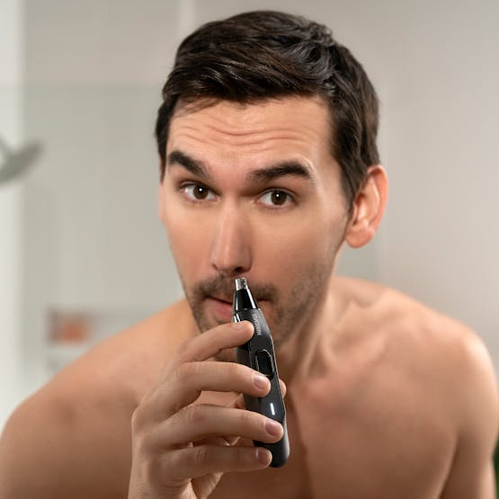 Description One rogue nose or ear hair can be the difference between attracting the right or the wrong kind of attention - by a hair. Cut to a painless solution: the Weed Whacker 2.0 with second-generation engineering and a superior cutting performance. SkinSafe technology Waterproof Up to 45-minute runtime Intelligently contoured ergonomic design 360° rotary dual-blade system 7,000 RPM motor Who’d We Make This Nose Hair Trimmer for? If you’re starting to notice a few unruly hairs creeping out of your nose and ears, don’t panic. Once you make trimming your craniofacial manholes with the Weed Whacker 2.0 part of your essential grooming routine, no one will know the wiser. Sharp on Hairs This sleekly designed sequel is fitted with a significantly improved blade, providing a closer, easier cut, missing fewer hairs with the same SkinSafe technology* you've come to know and love. *SkinSafe technology does not guarantee protection. Go Ahead, Get Wet Works wet and dry, so you can use it in the shower or rinse it off under the faucet.* *IPX7 rated to protect against immersion in up to one meter of fresh water for up to 30 minutes. Learn more at manscaped.com/waterproof. Unplug. Unhair Sniffing out stray hairs on the go has never been easier. With a cordless rechargeable AAA NiMH battery, this nose and ear hair trimmer operates on its own power supply with up to 45 minutes of runtime. Easy to Grip, Easy to Snip Get more precision in your prep with a matte, rubberized grip that’s easy to hold and gets where it needs to go. A Cut Above the Rest A premium 7,000 RPM motor powers our new 360° rotary dual-blade system so you experience no pulling, virtually guaranteed.* *98% of men experience no pulling.