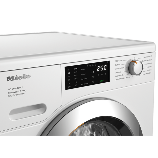 Upgrade your laundry routine with the Miele 10kg Washing Machine featuring QuickPowerWash and Pre-Ironing capabilities. This high-performance appliance offers a spacious 10kg capacity, perfect for handling large loads with ease. The QuickPowerWash function ensures efficient and thorough cleaning in a fraction of the time, while the Pre-Ironing feature reduces wrinkles, saving you time and effort on ironing. With Miele's renowned quality and innovative technology, this washing machine is designed to provide exceptional results and convenience for your everyday laundry needs. Say goodbye to laundry day hassles and hello to a new level of efficiency with the Miele WEK365WCS Washing Machine.