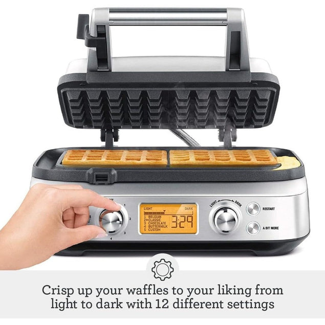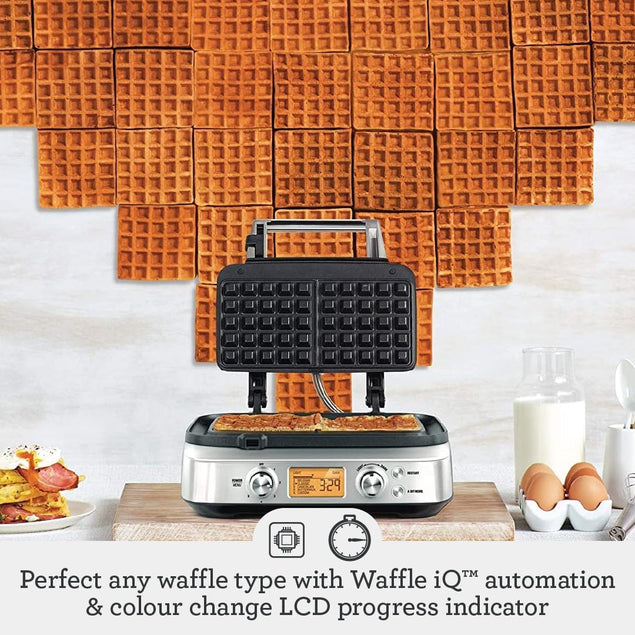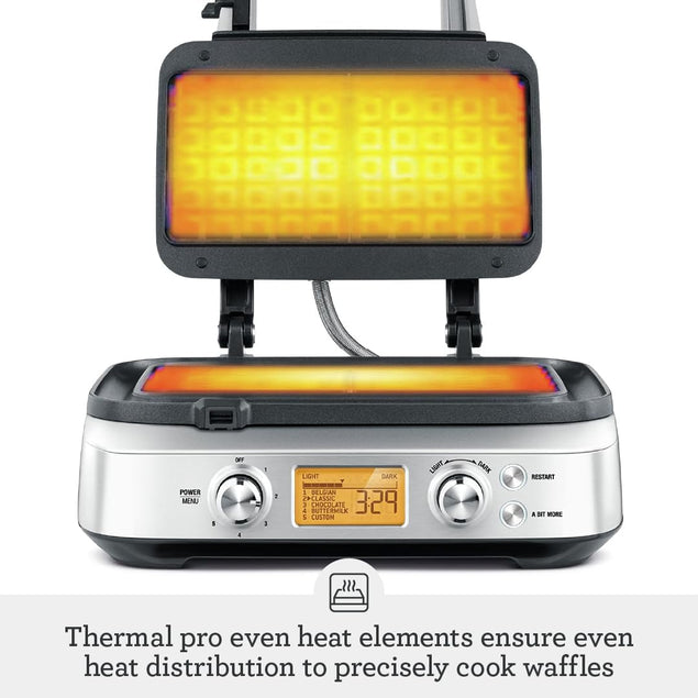 Upgrade your breakfast game with the Sage the Smart Waffle™ Pro Waffle Maker. This innovative kitchen appliance features a range of smart features to help you create perfect waffles every time. With its 'Waffle IQ' technology, you can customize your waffle type and color, while the thermal engineered heating elements ensure even cooking throughout. The non-stick surface makes cleaning a breeze, and the sleek stainless steel design adds a touch of sophistication to your kitchen. Whether you prefer classic Belgian waffles or something more adventurous, the Sage the Smart Waffle™ Pro Waffle Maker is sure to become a staple in your morning routine.