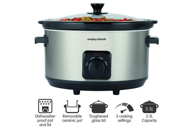 Upgrade your kitchen with the Morphy Richards 6.5L Stainless Steel Slow Cooker, the perfect appliance for busy individuals looking to prepare delicious meals with ease. With a generous 6.5L capacity, this slow cooker is ideal for cooking large portions or for meal prepping for the week ahead. The stainless steel design not only adds a sleek touch to your kitchen but also ensures durability and easy cleaning. Equipped with a range of convenient features such as three heat settings and a keep warm function, this slow cooker allows you to effortlessly create flavorful dishes without the need for constant monitoring. Whether you're simmering soups, stews, or curries, the Morphy Richards 6.5L Stainless Steel Slow Cooker is a versatile and reliable addition to any kitchen.