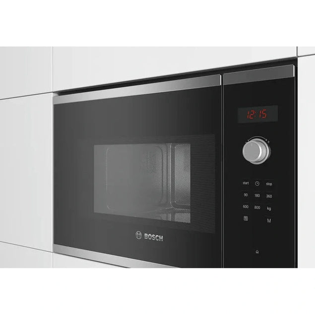 Upgrade your kitchen with the Bosch 20L Integrated Stainless Steel Microwave, model BFL523MS0B. This sleek and modern appliance seamlessly blends into your cabinetry for a seamless look. With a spacious 20-liter capacity, this microwave offers plenty of room for all your cooking needs. The stainless steel finish not only adds a touch of elegance to your kitchen but also makes it easy to clean and maintain. Equipped with a range of convenient features such as multiple power levels and automatic defrost settings, the Bosch microwave makes cooking and reheating a breeze. The integrated design saves valuable counter space while still providing powerful and efficient cooking capabilities. Whether you're heating up leftovers or preparing a quick meal, the Bosch 20L Integrated Stainless Steel Microwave is a stylish and practical addition to any modern kitchen.