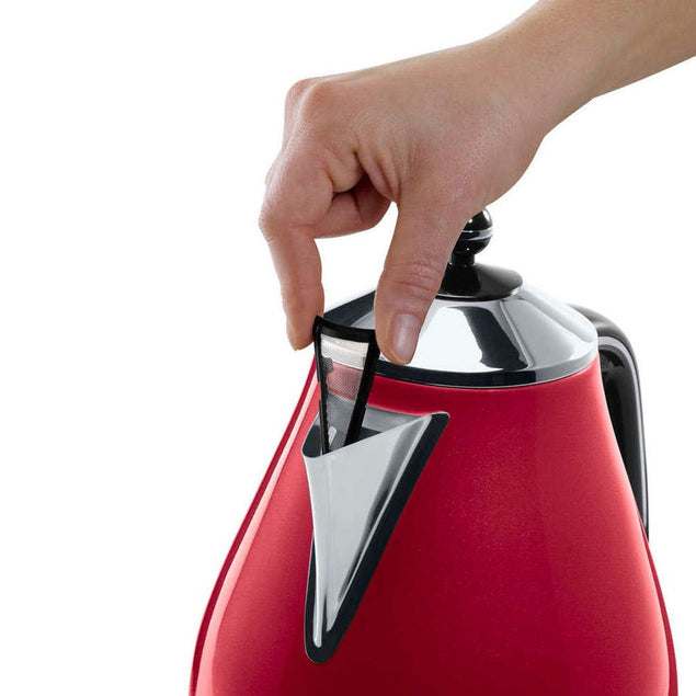 Upgrade your kitchen with the Delonghi 1.7 L Red Kettle, model KBOM3001.R. This sleek and stylish kettle features a generous 1.7-liter capacity, perfect for boiling water for tea, coffee, or other hot beverages. The vibrant red color adds a pop of color to your countertop, while the durable stainless steel construction ensures long-lasting performance. With a 360-degree swivel base and cord storage, this kettle is as convenient as it is attractive, making it a must-have for any modern kitchen. Experience the perfect blend of style and functionality with the Delonghi 1.7 L Red Kettle. Whether you're starting your day with a cup of tea or winding down with a hot cocoa, this kettle is designed to make your life easier. The easy-to-use design and reliable performance make it a great addition to any home, while the striking red color adds a touch of personality to your kitchen decor. Upgrade your morning routine with the Delonghi 1.7 L Red Kettle and enjoy the convenience of boiling water quickly and efficiently.