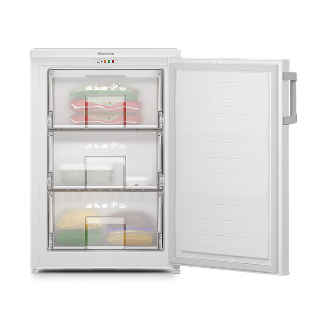 Upgrade your kitchen with the Blomberg Frost Free Under Counter Freezer in sleek white. This compact yet spacious freezer offers ample storage for all your frozen goods, while the frost-free technology ensures you never have to manually defrost. The reversible door and adjustable feet make it easy to fit this freezer seamlessly into any kitchen layout. With a 75-liter capacity and energy-efficient design, the Blomberg FNE154P is the perfect addition to any modern home looking for a reliable and stylish freezer solution. Say goodbye to freezer maintenance hassles and hello to convenient storage with the Blomberg Frost Free Under Counter Freezer. Its clean white finish and under-counter design make it a versatile and practical choice for any kitchen space. Whether you need extra freezer space for bulk shopping or simply want to keep your frozen goods organized, this freezer delivers on both functionality and style. Invest in the Blomberg FNE154P for a hassle-free freezing experience and enjoy the peace of mind that comes with a high-quality appliance from a trusted brand.