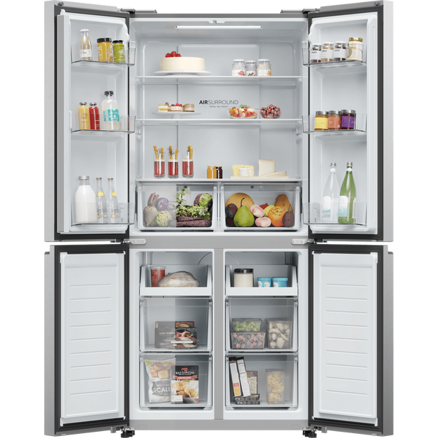 Upgrade your kitchen with the Haier Cube 83 Series American Fridge Freezer in sleek silver. This spacious and stylish appliance offers ample storage for all your fresh and frozen goods, with a total capacity of 380 litres. The innovative design includes adjustable shelves and door balconies, as well as a handy LED display for easy temperature control. With advanced features like a holiday mode to save energy when you're away, this fridge freezer combines practicality and modern design for a seamless addition to your home. Experience the convenience and efficiency of the Haier Cube 83 Series American Fridge Freezer in Silver. This high-quality appliance not only keeps your food fresh and organized, but also adds a touch of sophistication to your kitchen. With its energy-saving technology and user-friendly features, this fridge freezer is the perfect blend of style and functionality for any modern home. Upgrade to the Haier Cube 83 Series today and elevate your kitchen experience.
