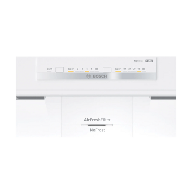 Upgrade your kitchen with the Bosch Series 4 86cm Freestanding Fridge Freezer. This sleek and modern appliance offers ample storage space for all your fresh and frozen goods, with a total capacity of 260 litres. The fridge features innovative technologies such as VitaFresh to keep your produce fresher for longer, while the freezer boasts NoFrost technology to prevent ice build-up and ensure efficient cooling. With its energy-efficient design and convenient features like LED lighting and adjustable shelves, the Bosch Series 4 Fridge Freezer is the perfect addition to any home. Its stylish stainless steel finish and reversible door make it versatile and easy to integrate into your kitchen layout. Experience the reliability and quality that Bosch is known for with this premium appliance that combines functionality with a modern aesthetic.