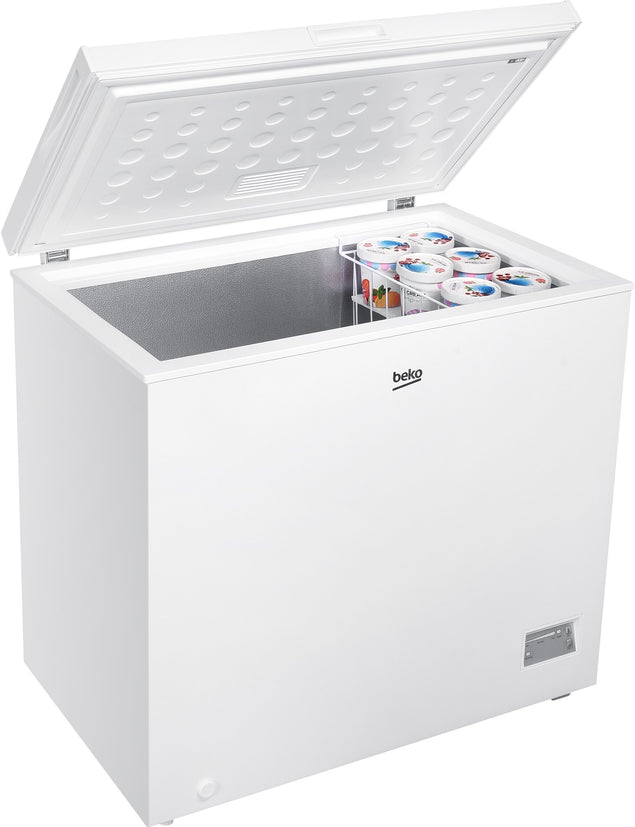 Upgrade your home with the Beko 198L Freestanding Chest Freezer. With a spacious interior and a sleek white design, this freezer is perfect for storing all your frozen goods. The CF4198W model features a fast freeze function to quickly lower the temperature, ensuring your food stays fresh for longer. Equipped with a counterbalanced lid for easy access and an adjustable thermostat for customized cooling, the Beko Chest Freezer is a convenient and reliable addition to any kitchen. Say goodbye to overcrowded freezers and hello to organized storage with the Beko CF4198W.