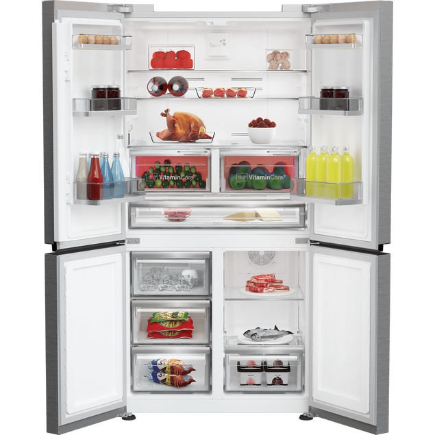 Upgrade your kitchen with the Blomberg 4 Door Fridge Freezer featuring VitaminCare+ technology in a sleek stainless steel finish. This innovative appliance not only keeps your food fresh for longer but also preserves essential vitamins and nutrients, ensuring your family enjoys healthier meals. With ample storage space and convenient features like adjustable shelves and a water dispenser, this fridge freezer is designed to meet all your food storage needs while adding a touch of modern elegance to your home. Invest in the Blomberg KQD114VPX 4 Door Fridge Freezer for a reliable and stylish addition to your kitchen. Its advanced technology and spacious design make it a must-have for any household looking to prioritize freshness and nutrition in their daily meals. Say goodbye to food waste and hello to a healthier lifestyle with this premium appliance from Blomberg.