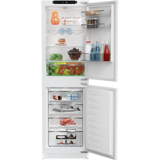 Upgrade your kitchen with the Blomberg Integrated 50:50 Frost Free Combi Fridge Freezer, model KNE4564EVI. This sleek and modern appliance offers a perfect balance of fridge and freezer space, making it ideal for households of all sizes. With its frost-free technology, you can say goodbye to the hassle of manual defrosting, while the integrated design seamlessly blends into your kitchen for a clean and polished look. Equipped with advanced features such as adjustable shelves, LED lighting, and a super cool function, the Blomberg Combi Fridge Freezer ensures your food stays fresh and organized. Its energy-efficient design also helps you save on electricity bills while reducing your carbon footprint. Elevate your kitchen experience with the Blomberg KNE4564EVI and enjoy the convenience and style it brings to your home.