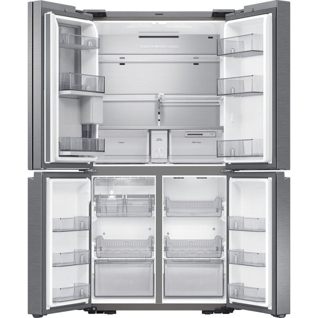 Upgrade your kitchen with the Samsung RF9000 French Door Fridge Freezer featuring a convenient Beverage Centre™. This sleek and modern appliance offers ample storage space for all your groceries, while the adjustable shelves and compartments allow for easy organization. The innovative Beverage Centre™ provides quick access to your favorite drinks without having to open the main fridge door, making it perfect for entertaining guests or grabbing a quick refreshment on the go. With its stylish French door design and advanced cooling technology, the Samsung RF9000 Fridge Freezer is not only a practical addition to your home but also a statement piece. The energy-efficient features help save on electricity costs, while the sleek stainless steel finish adds a touch of sophistication to any kitchen decor. Experience the convenience and luxury of the Samsung RF9000 French Door Fridge Freezer with Beverage Centre™.