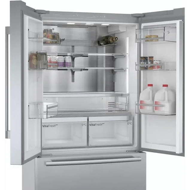 Upgrade your kitchen with the Bosch Serie | 8 American Fridge Freezer in sleek stainless steel. This premium appliance offers ample storage space for all your groceries, with a generous capacity and adjustable shelves for maximum flexibility. The innovative VitaFresh technology keeps your produce fresher for longer, while the NoFrost feature prevents ice buildup, ensuring easy maintenance. With its modern design and advanced features, the Bosch Serie | 8 American Fridge Freezer is a stylish and practical addition to any home. The stainless steel finish adds a touch of elegance to your kitchen, while the energy-efficient performance helps you save on utility bills. Experience the convenience and reliability of Bosch appliances with this top-of-the-line fridge freezer.