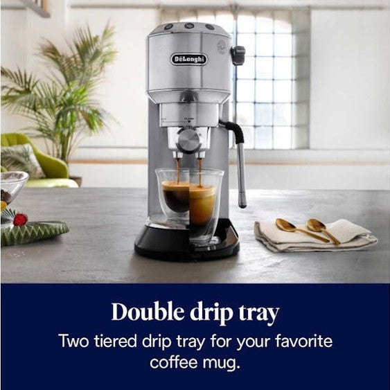 Elevate your coffee experience with the De’Longhi Dedica Arte Manual Espresso Maker EC885.M. This sleek and compact machine allows you to create barista-quality espresso in the comfort of your own home. With a professional 15-bar pressure pump and adjustable manual cappuccino system, you can customize your drinks to perfection. The Dedica Arte Espresso Maker features a thermoblock heating system for quick and efficient brewing, while the integrated cup warmer ensures your espresso stays at the perfect temperature. Its premium stainless steel construction not only looks stylish on your countertop but also ensures durability for years of use. Upgrade your morning routine with the De’Longhi Dedica Arte Manual Espresso Maker EC885.M.