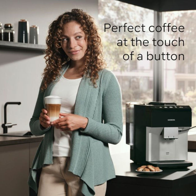 Experience the perfect cup of coffee every morning with the Siemens EQ500 Classic Bean-to-Cup Coffee Machine. This sleek and stylish machine, available in Daylight Silver or Piano Black, effortlessly grinds fresh coffee beans to deliver a rich and aromatic brew at the touch of a button. With customizable settings for strength, temperature, and volume, you can enjoy your coffee just the way you like it. The integrated milk frother allows you to create barista-quality lattes and cappuccinos in the comfort of your own home. Elevate your coffee experience with the Siemens EQ500 Classic Bean-to-Cup Coffee Machine. Upgrade your morning routine with the Siemens EQ500 Classic Bean-to-Cup Coffee Machine. This high-quality appliance combines cutting-edge technology with elegant design to bring the cafe experience to your kitchen. The intuitive interface makes it easy to select your preferred coffee style, while the self-cleaning function ensures hassle-free maintenance. Whether you prefer a strong espresso or a creamy latte, the Siemens EQ500 Classic Bean-to-Cup Coffee Machine will satisfy your cravings with every cup. Start your day right with the perfect brew from Siemens.