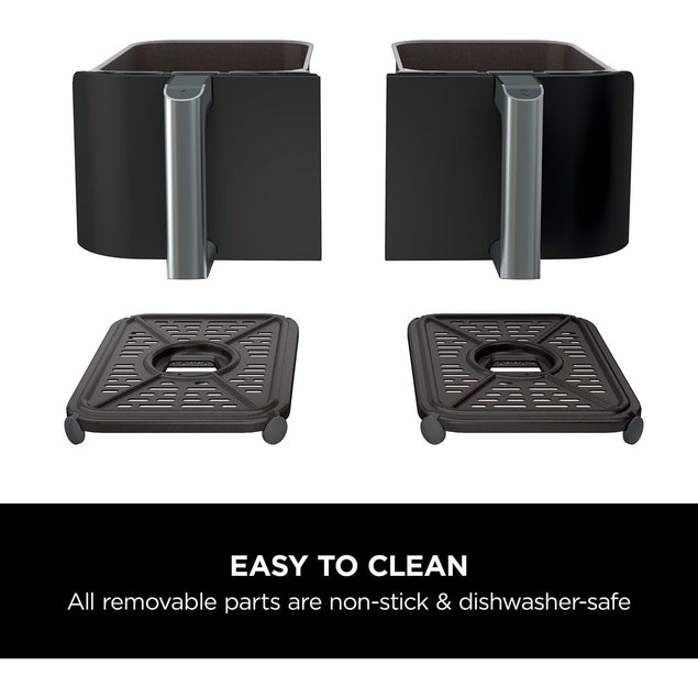 The Ninja Foodi Dual Zone Air Fryer AF300UK is a versatile and efficient kitchen appliance that allows you to cook two different foods simultaneously with its dual-zone technology. With a generous capacity of 7.6 liters, you can easily prepare meals for the whole family in one go. The air fryer's rapid air circulation technology ensures crispy and delicious results with up to 75% less fat than traditional frying methods, making it a healthier option for your favorite fried foods. Equipped with multiple cooking functions, including air fry, roast, reheat, and dehydrate, this Ninja Foodi air fryer offers endless possibilities for creating a wide variety of dishes. The easy-to-use control panel and digital display make it simple to adjust time and temperature settings, while the dishwasher-safe parts ensure easy cleaning and maintenance. Upgrade your kitchen with the Ninja Foodi Dual Zone Air Fryer AF300UK and enjoy convenient, delicious, and healthier meals every day.
