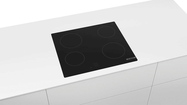 Upgrade your kitchen with the Bosch Series 2 60 cm Four-Zone Electric Hob, model PKE61RAA8B. This sleek and efficient hob features four cooking zones, allowing you to easily prepare multiple dishes at once. With its easy-to-use touch controls and quick heating elements, cooking has never been more convenient. The hob's modern design and durable build make it a stylish and reliable addition to any kitchen. Experience the convenience and quality of Bosch with the Series 2 Electric Hob.