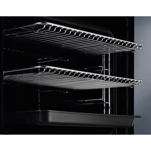 Upgrade your kitchen with the Electrolux Pyrolytic Built-In Single Oven EOM6P46K. This sleek and modern oven not only adds style to your space, but also offers advanced cooking technology for exceptional results. With pyrolytic self-cleaning capabilities, maintaining a spotless oven has never been easier. The spacious interior and multiple cooking functions make it perfect for all your culinary creations. Whether you're baking, roasting, or grilling, this Electrolux oven will help you achieve delicious dishes with ease. Bring convenience and efficiency to your kitchen with the EOM6P46K.
