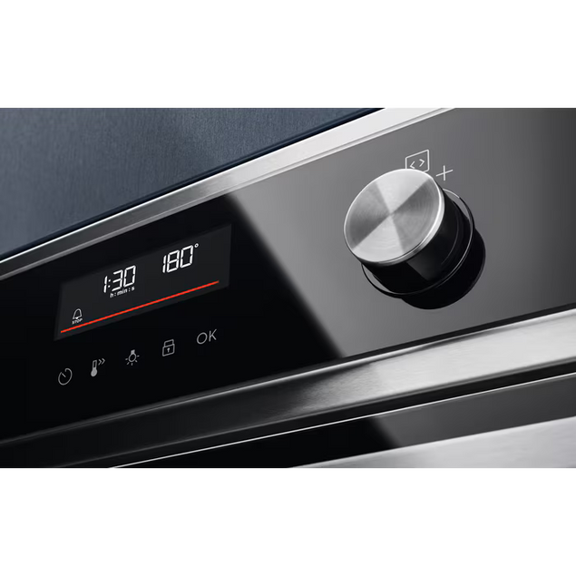 Upgrade your kitchen with the Electrolux 60 cm Built‑In Pyrolytic Multifunction Oven in sleek stainless steel. This high-quality oven offers a range of cooking options, from baking to grilling, all in one convenient appliance. With a spacious interior and advanced pyrolytic cleaning function, maintaining this oven is a breeze. Say goodbye to scrubbing and hello to more time enjoying delicious meals with the Electrolux EOF6P46X. Designed with both style and functionality in mind, this Electrolux oven is a must-have for any modern kitchen. The stainless steel finish adds a touch of elegance, while the multifunction capabilities ensure you can cook a variety of dishes with ease. Whether you're a seasoned chef or just starting out, the EOF6P46X is sure to elevate your cooking experience.