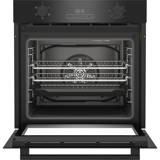 Upgrade your kitchen with the Blomberg Single Fan Oven in sleek black. The ROEN8201B model offers a spacious interior and powerful fan for even cooking results every time. With a range of cooking functions and easy-to-use controls, this oven is perfect for busy households or aspiring chefs looking to create delicious meals with ease. Its modern design and high-quality construction make it a stylish and reliable addition to any kitchen. Elevate your cooking experience with the Blomberg Single Fan Oven.