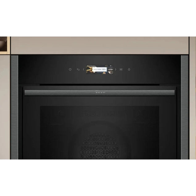Upgrade your kitchen with the Neff N 70 Built-in Oven in a sleek graphite-grey finish. With a spacious 60 x 60 cm design, this oven offers ample room for all your cooking needs. The B54CR71G0B model features advanced technology for precise cooking results, including CircoTherm for even heat distribution and a Slide&Hide door for easy access. Experience the convenience and efficiency of a Neff oven in your home. Whether you're baking, roasting, or grilling, this built-in oven is designed to meet all your culinary requirements. Elevate your cooking experience with the Neff N 70 Built-in Oven 60 x 60 cm Graphite-Grey | B54CR71G0B.